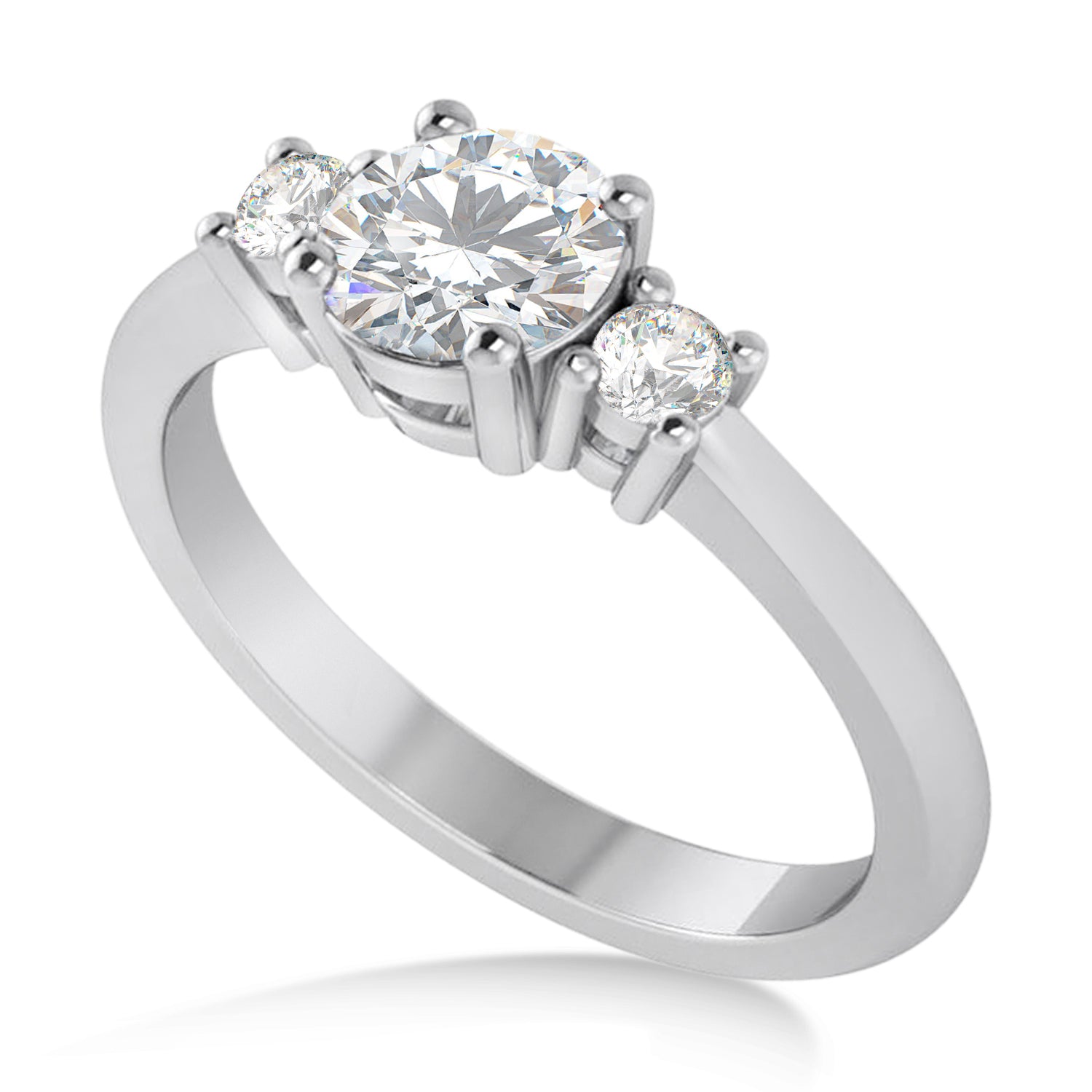 Round Moissanite & Diamond Three-Stone Engagement Ring 14k White Gold (0.89ct)