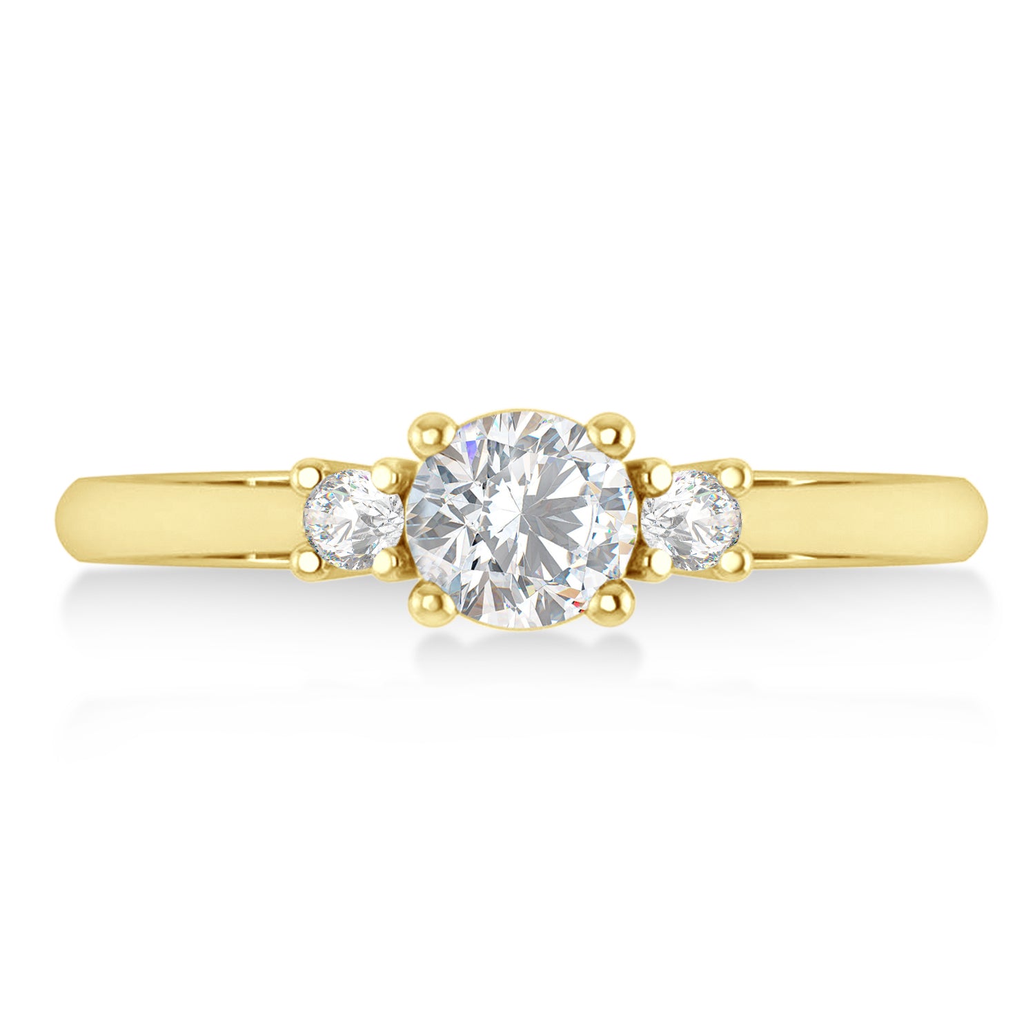 Round Moissanite & Diamond Three-Stone Engagement Ring 14k Yellow Gold (0.60ct)