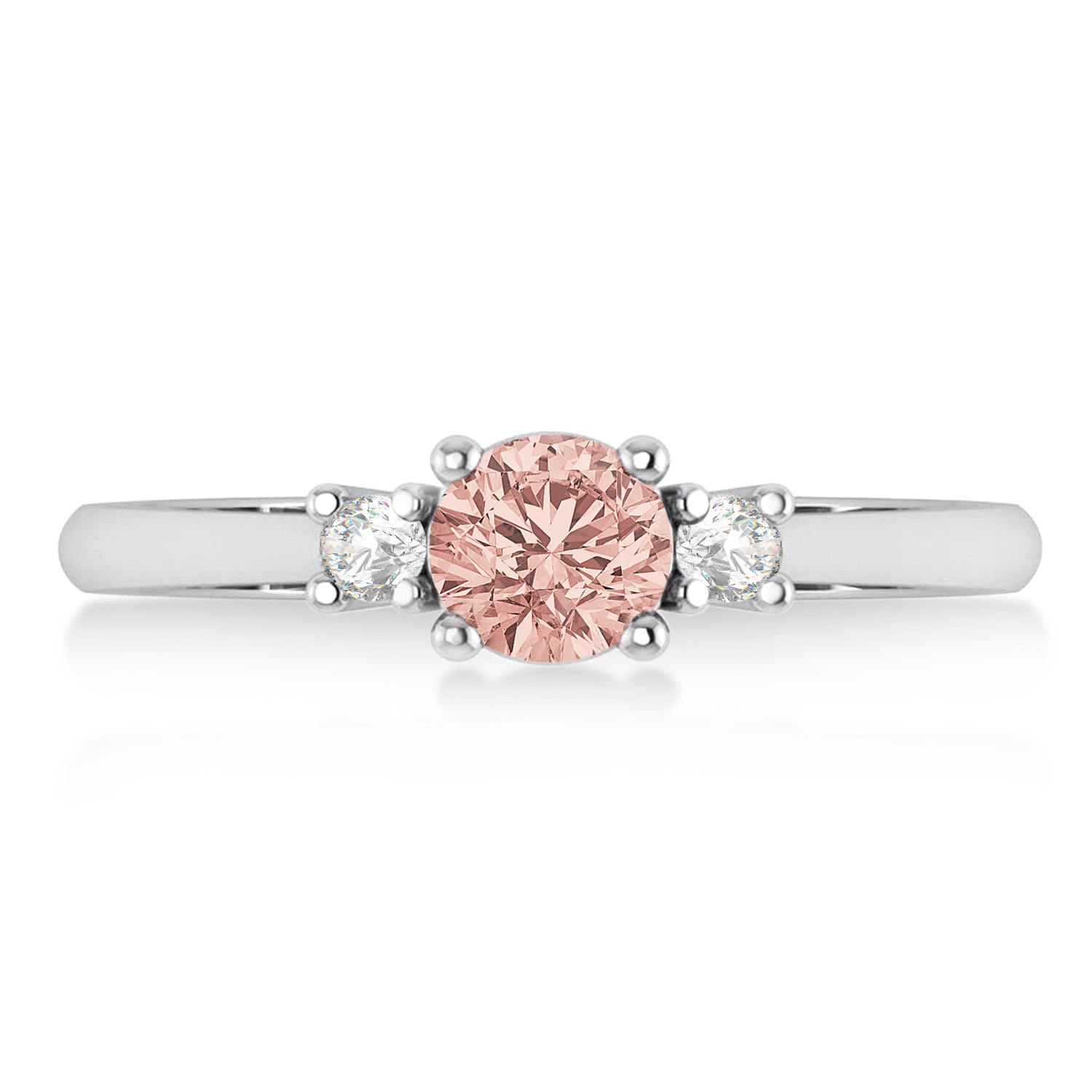 Round Morganite & Diamond Three-Stone Engagement Ring 14k White Gold (0.60ct)