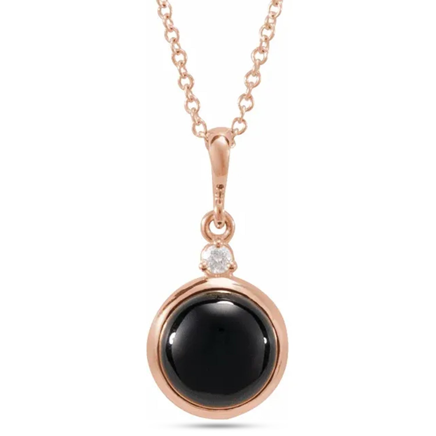 Adorn yourself with elegance and sophistication with our Natural Onyx & Diamond Pendant Necklace in luxurious 14K rose gold. This exquisite piece features a striking combination of natural onyx and sparkling diamonds totaling 1.53ct, creating a captivating contrast