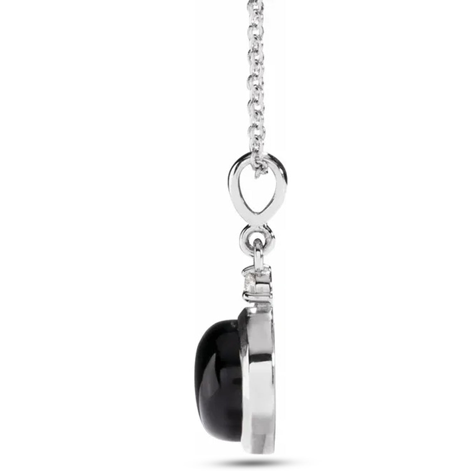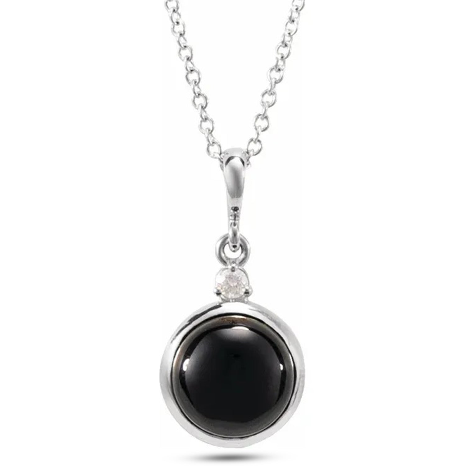 Round Natural Onyx & Diamond Pendant Necklace 14K White Gold (0.65ct)
