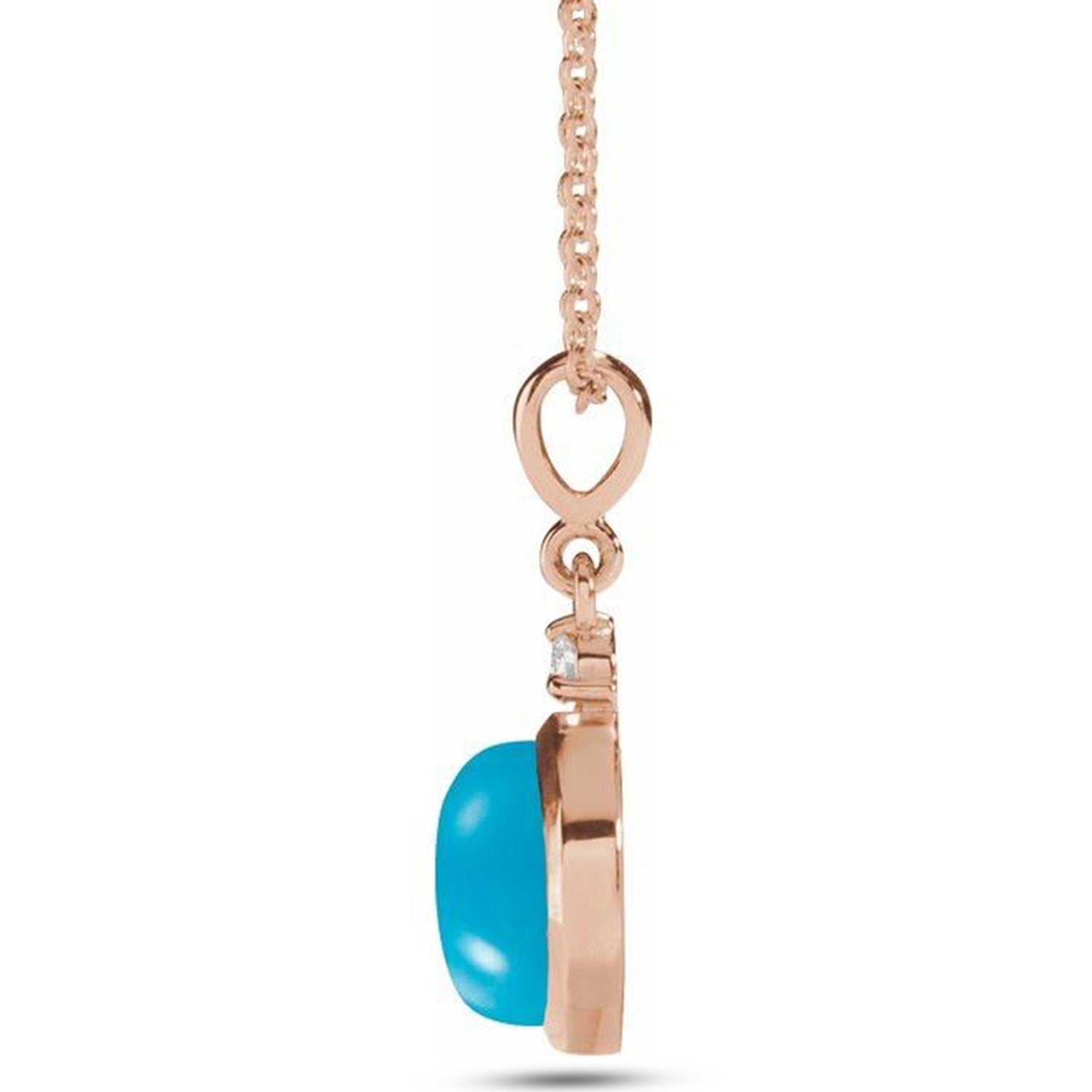 Elevate your style with this enchanting pendant necklace. Crafted in 14K rose gold, it features a stunning natural turquoise cabochon adorned with a halo of shimmering natural diamonds totaling 0.68 carats. Effortlessly chic, this necklace adds a pop of color and sparkle to any ensemble, making it a versatile and eye-catching accessory for any occasion