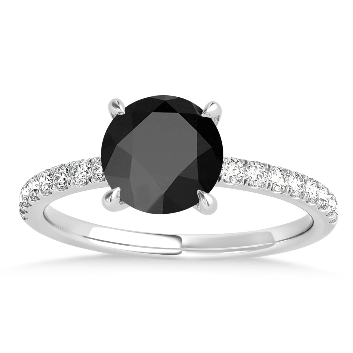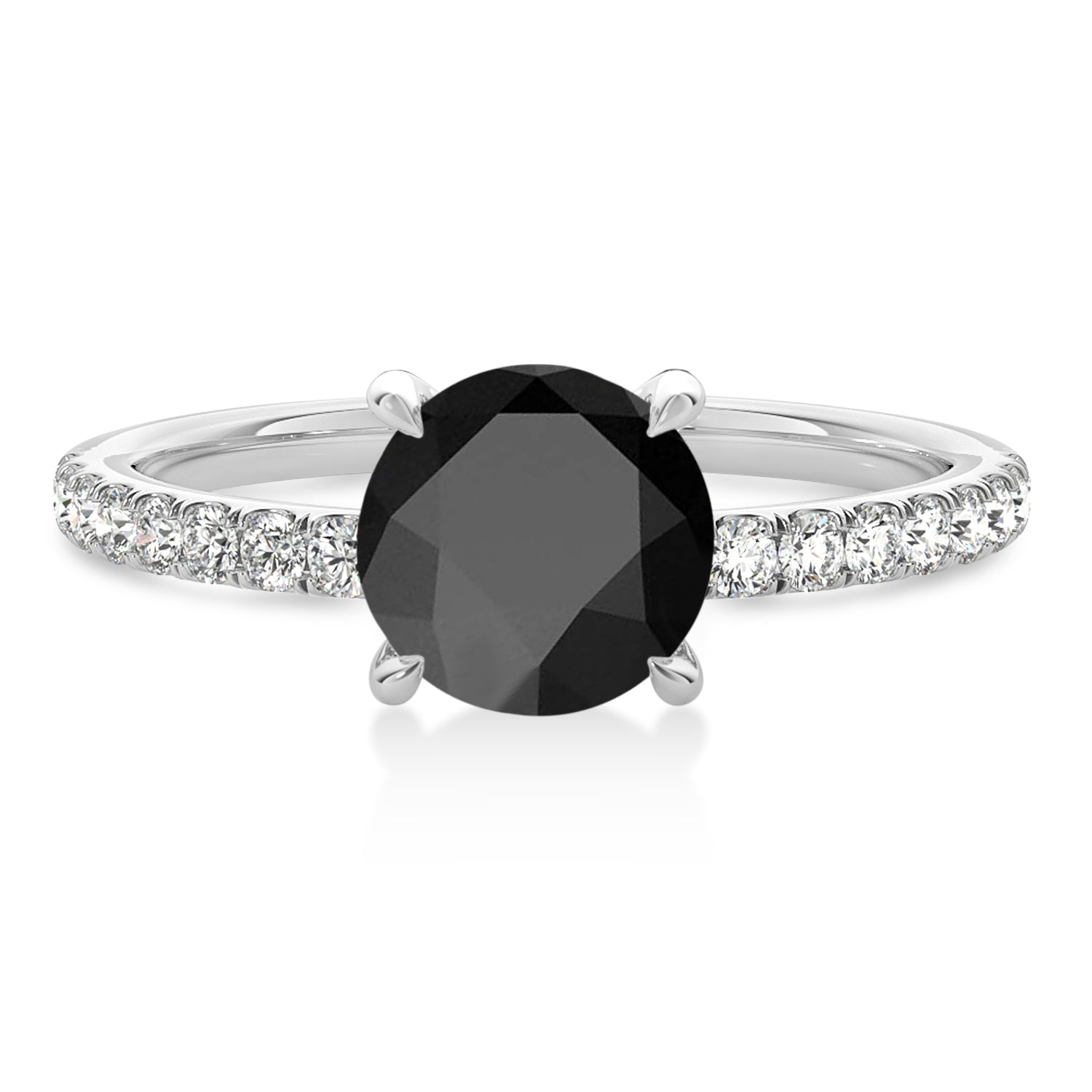 Round Onyx & Diamond Single Row Hidden Halo Engagement Ring 14k White Gold (1.25ct)