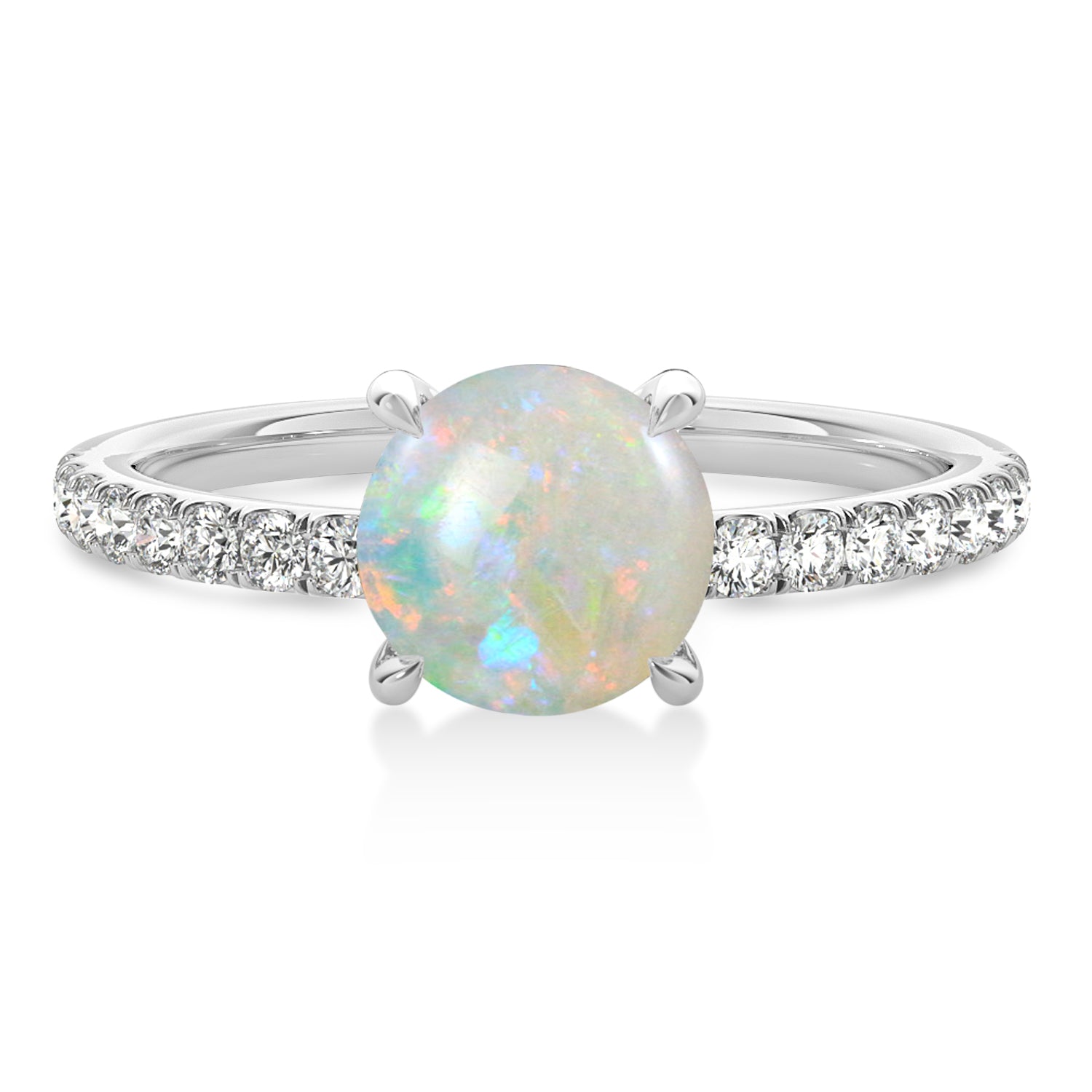 Round Opal & Diamond Single Row Hidden Halo Engagement Ring 18k White Gold (1.25ct)