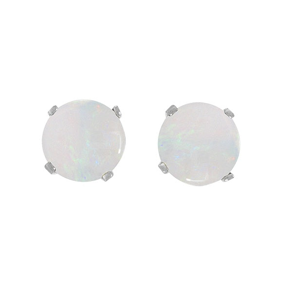 Round Opal Stud Earrings in 14K White Gold (0.40 ct)