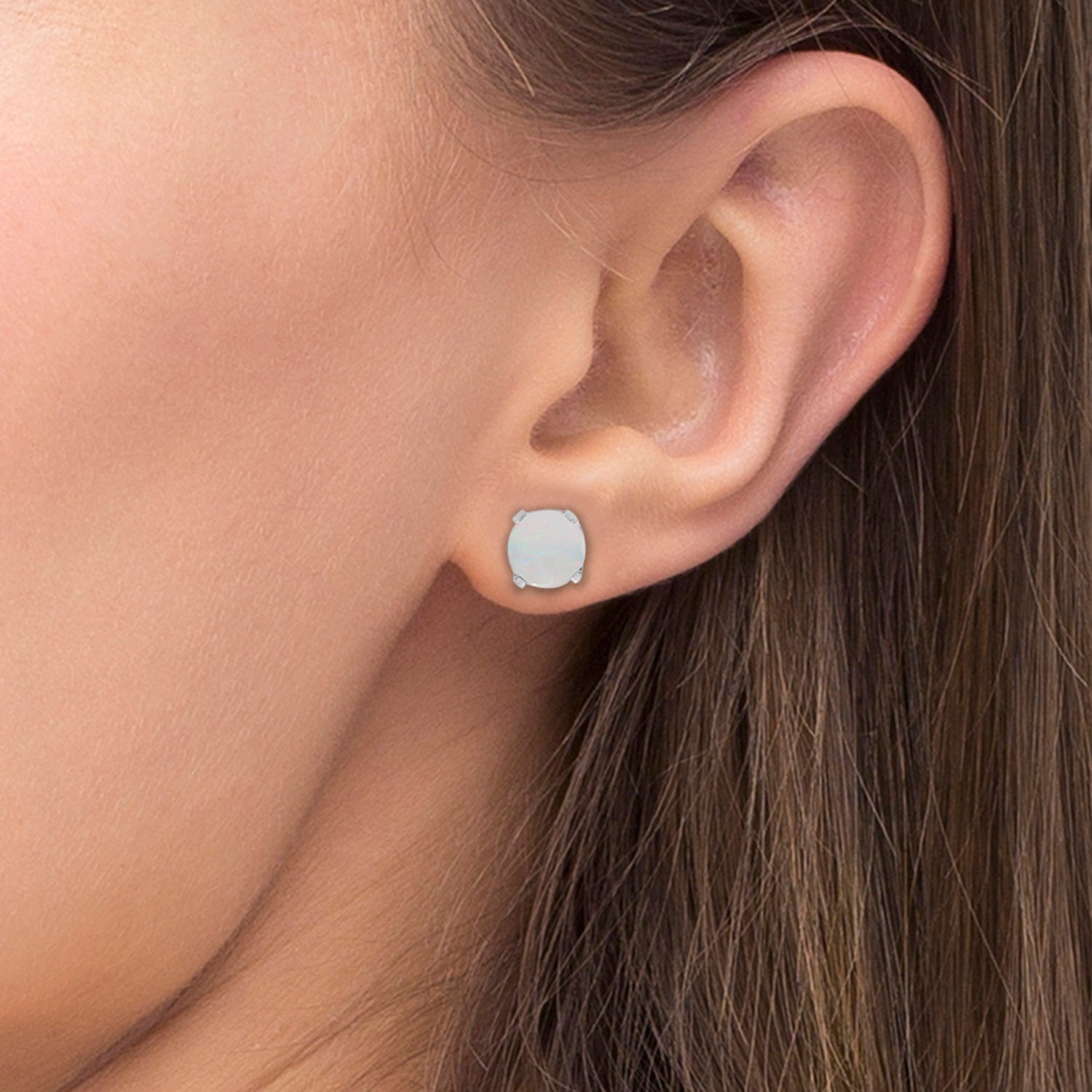 Round Opal Studs Earrings in 14k White Gold (0.60ct)