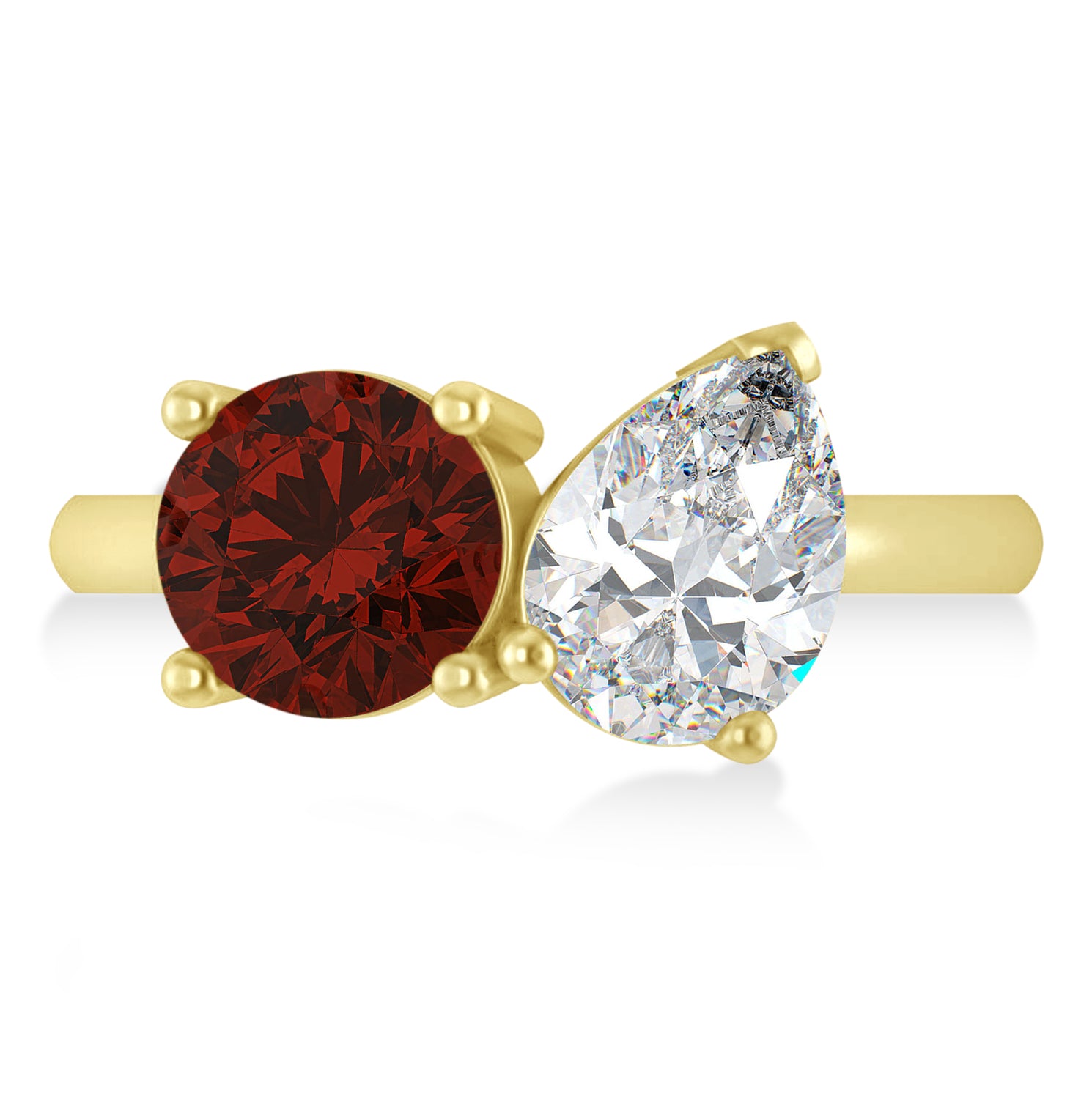 Round/Pear Diamond & Garnet Toi et Moi Ring 18k Yellow Gold (4.00ct)
