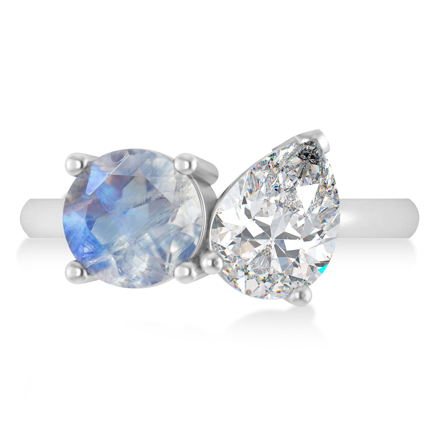 Round/Pear Diamond & Moonstone Toi et Moi Ring Platinum (4.00ct)