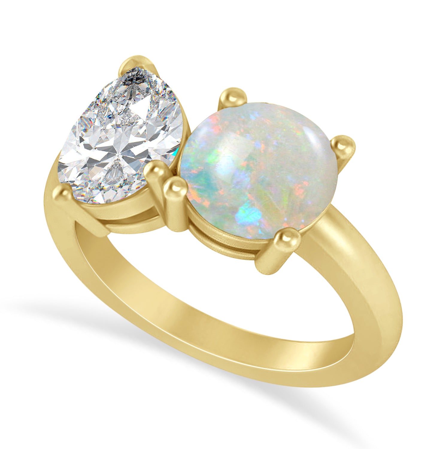 Round/Pear Diamond & Opal Toi et Moi Ring 18k Yellow Gold (4.00ct)