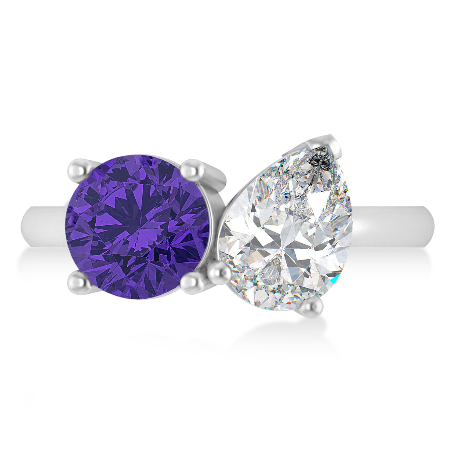 Round/Pear Diamond & Tanzanite Toi et Moi Ring 18k White Gold (4.00ct)