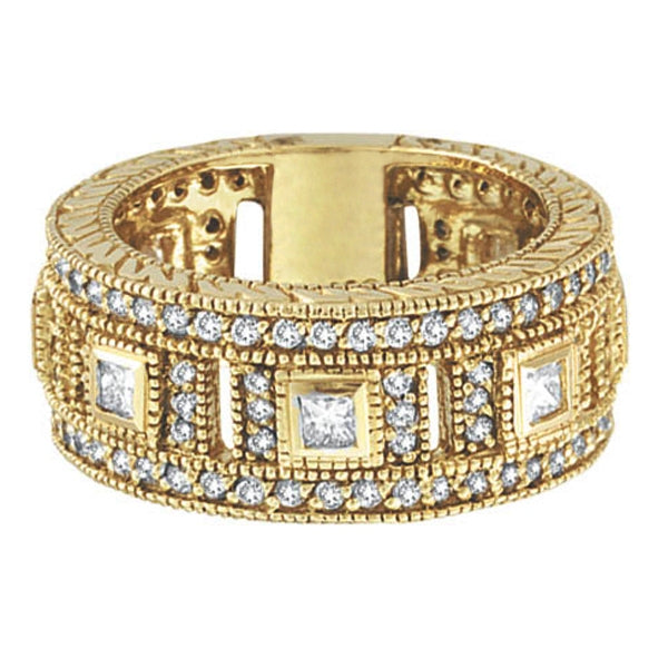 Round & Princess Eternity Diamond Byzantine Ring 14k Yellow Gold (1.72ct)