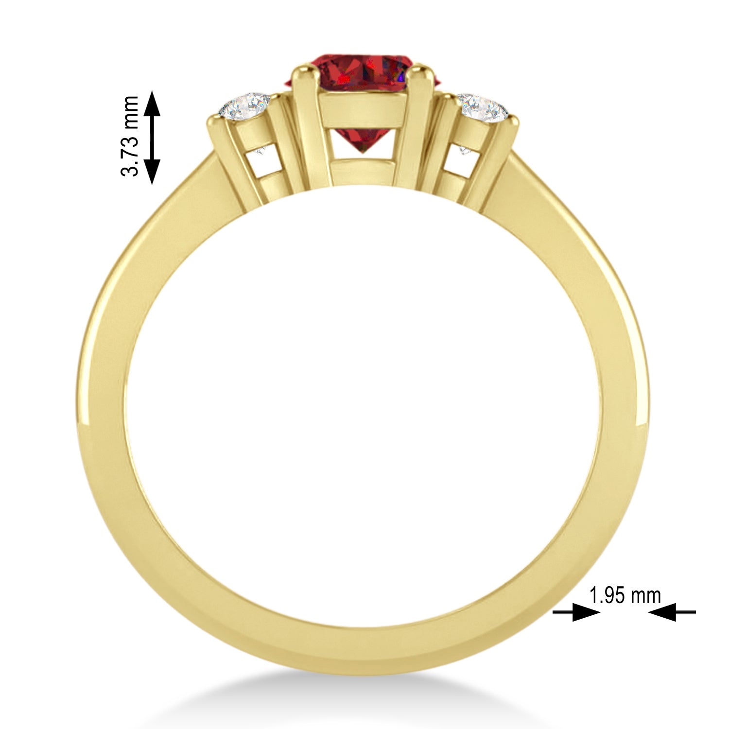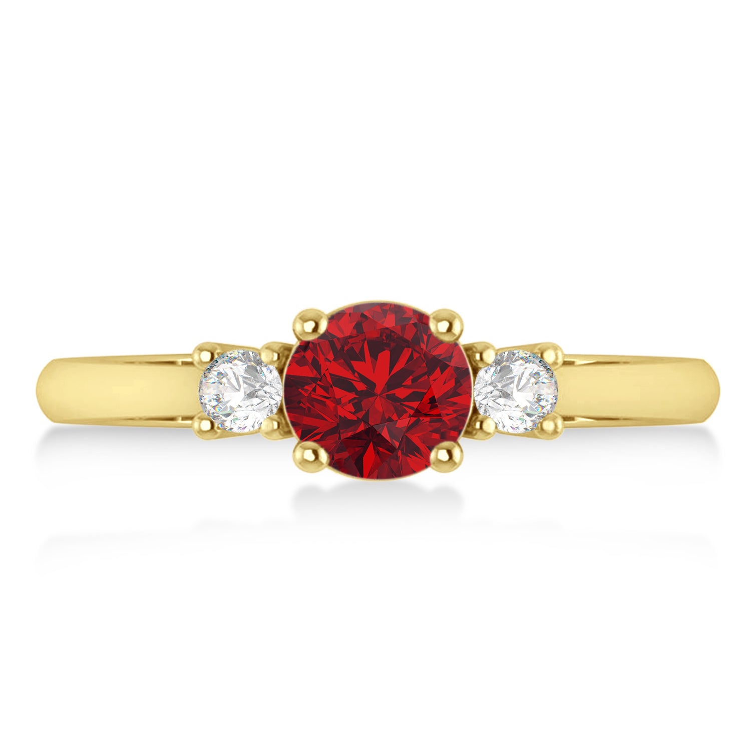 Round Ruby & Diamond Three-Stone Engagement Ring 14k Yellow Gold (0.89