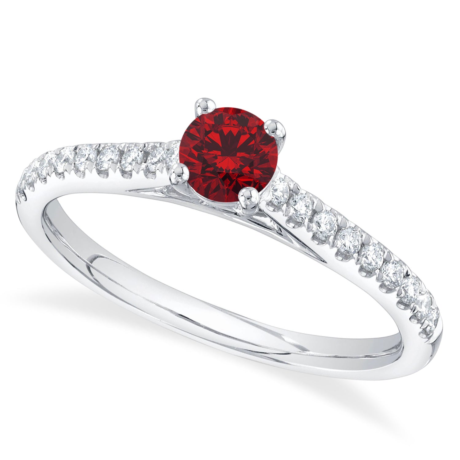 Round Ruby Solitaire & Diamond Engagement Ring 14K White Gold (0.77ct)