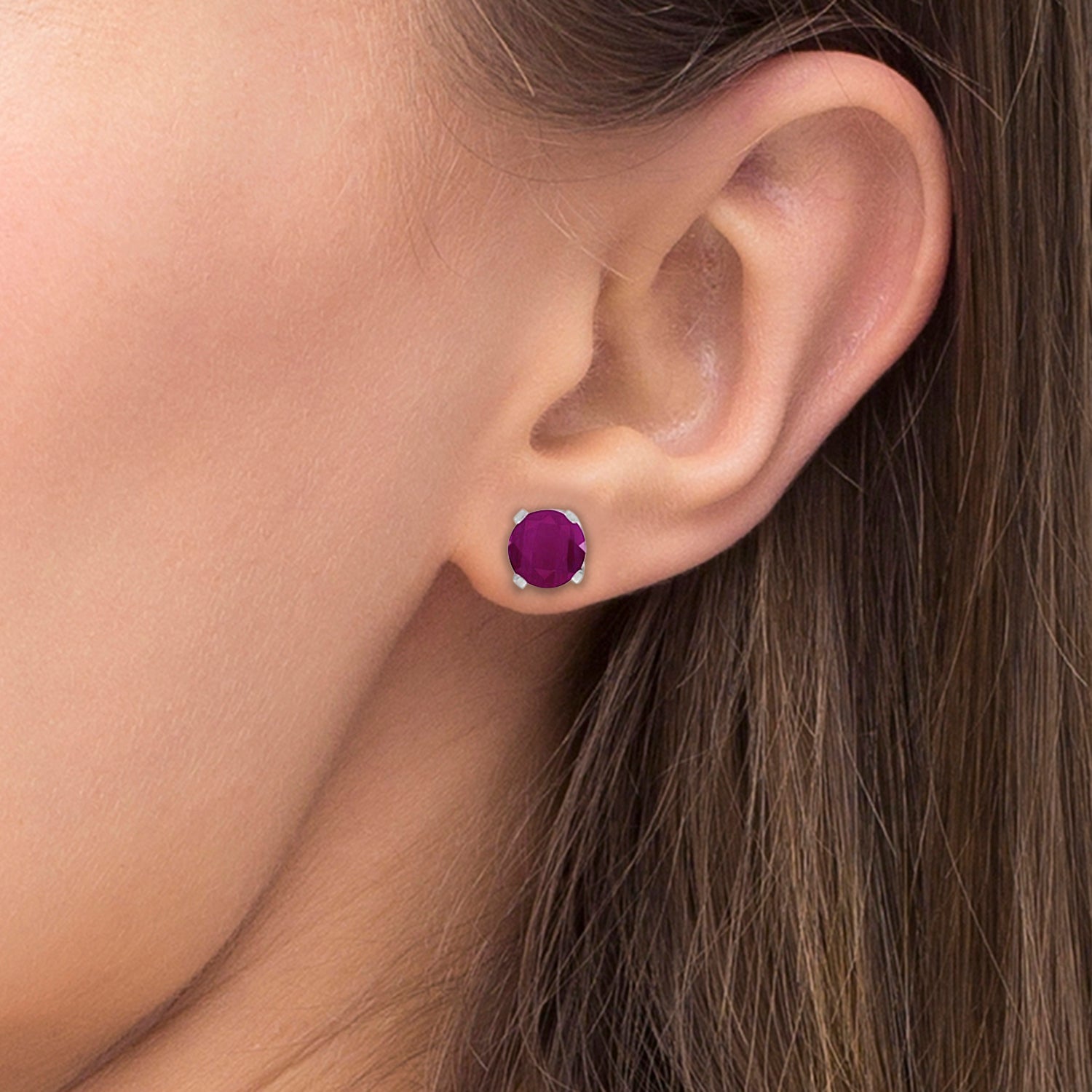 These 14k white gold round gemstone studs feature 4mm genuine natural Ruby with a 0.60ct total weight.