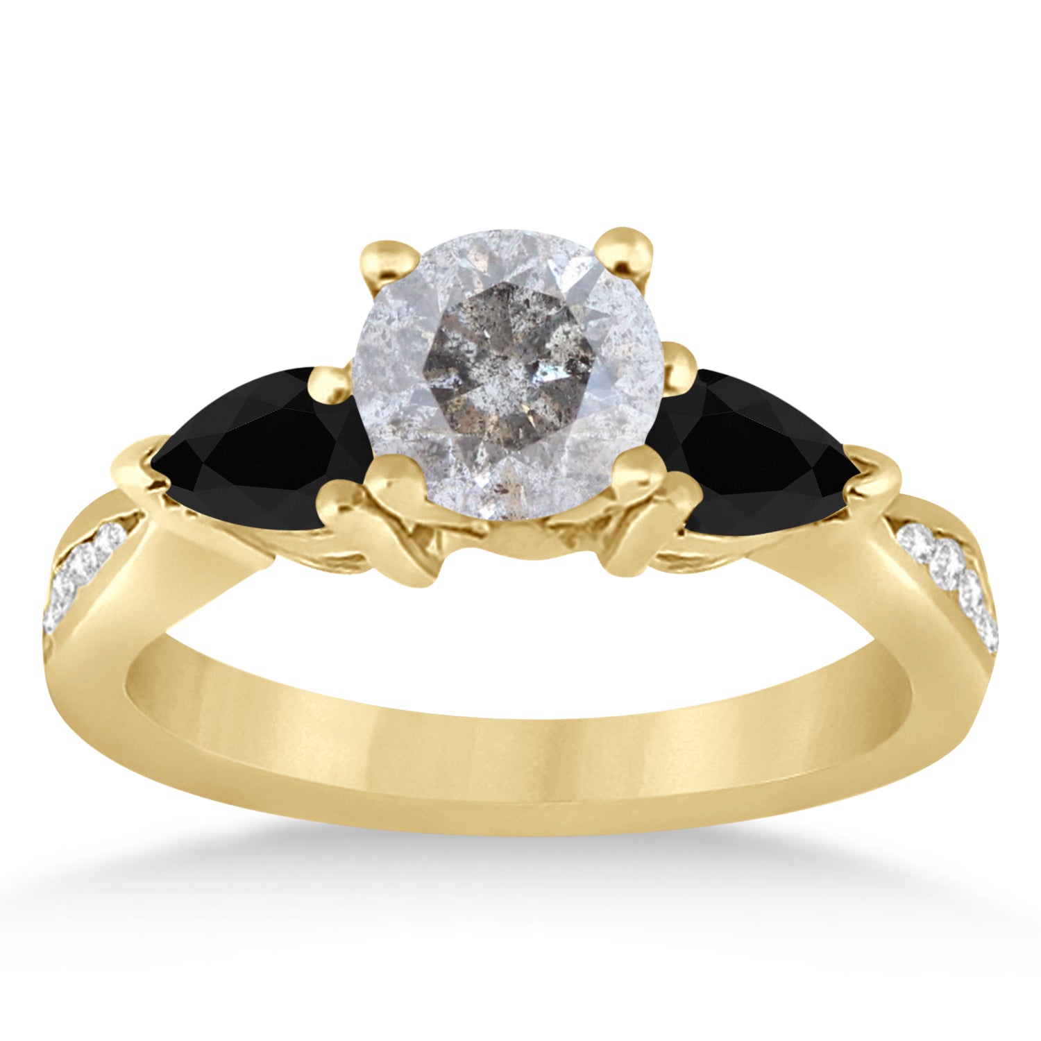 Round Salt & Pepper & Pear Black Diamond Engagement Ring 18k Yellow Go