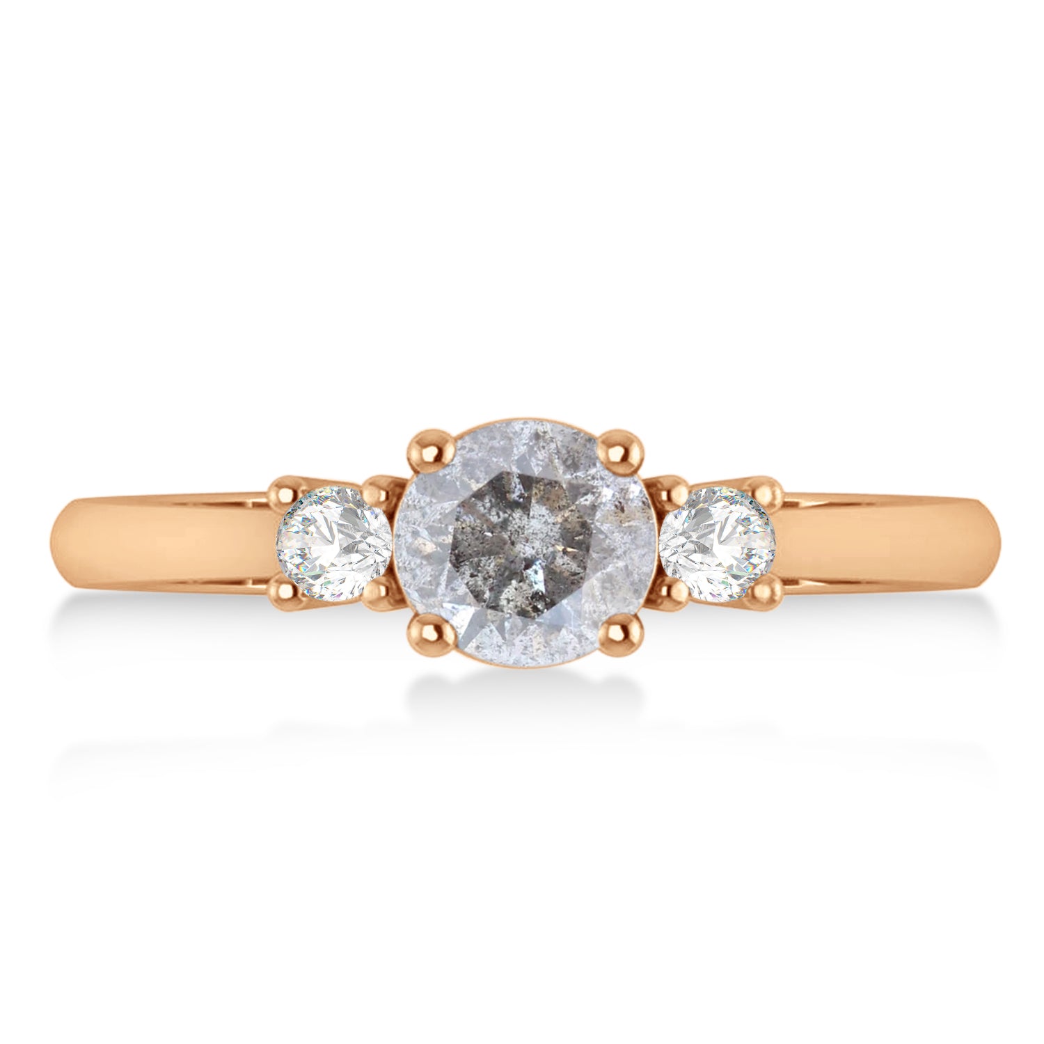 Round Salt & Pepper & White Diamond Three-Stone Engagement Ring 14k Rose Gold (0.89ct)
