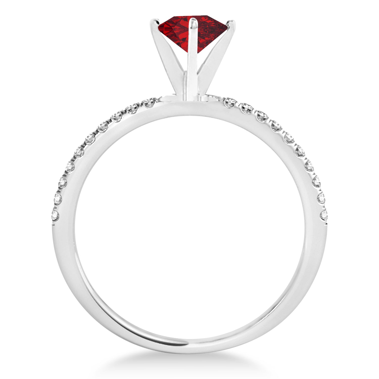 Romance personified with grace. This platinum Allurez semi-eternity band boasts a thrilling 2.88 carat oval shape center Ruby while the 20 extravagant pave-set round diamonds accenting the sides are of SI1-SI2 clarity and G-H color with an approximate carat weight of 0.12.