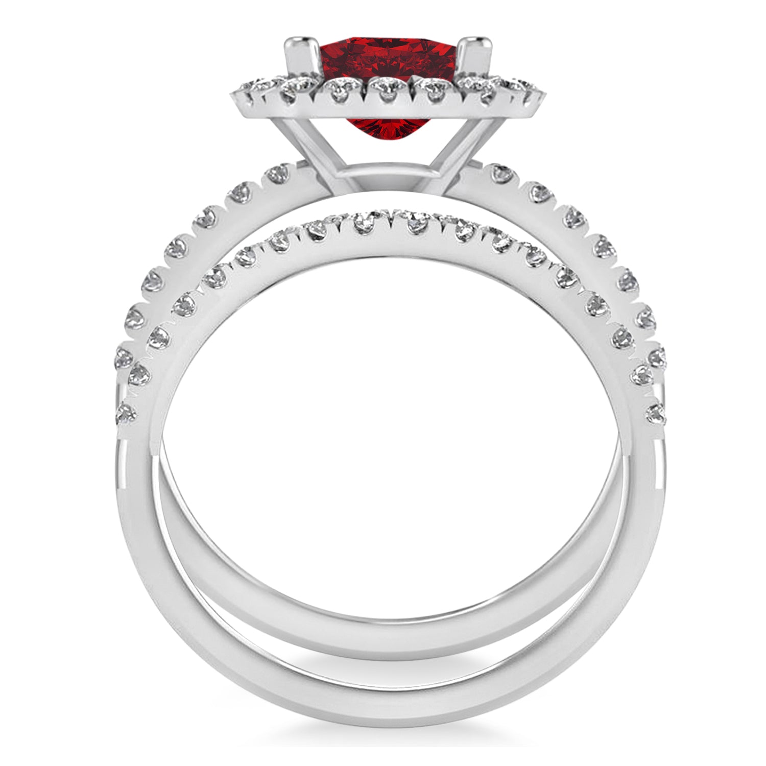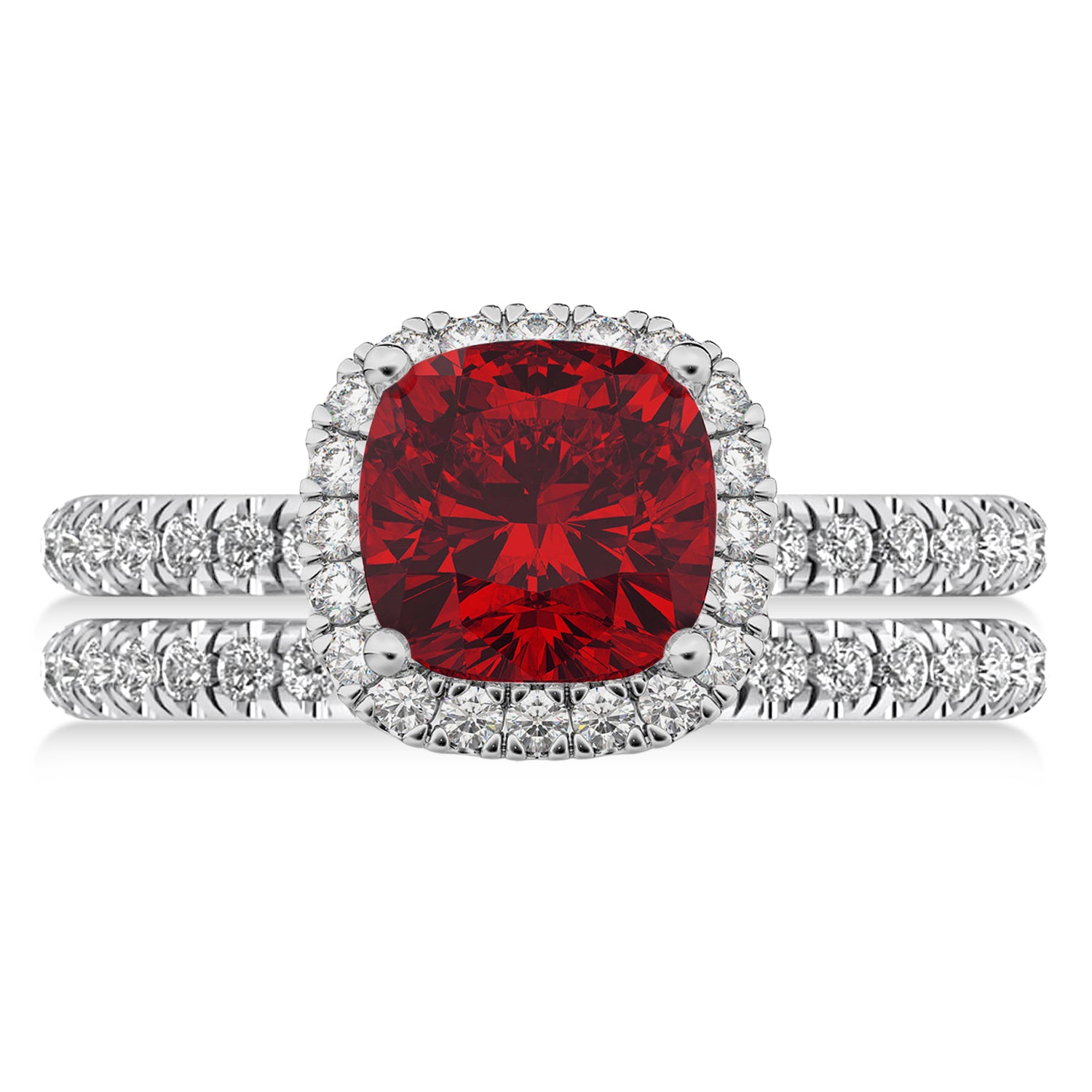 Ruby & Diamonds Cushion-Cut Halo Bridal Set 14K White Gold (3.38ct)