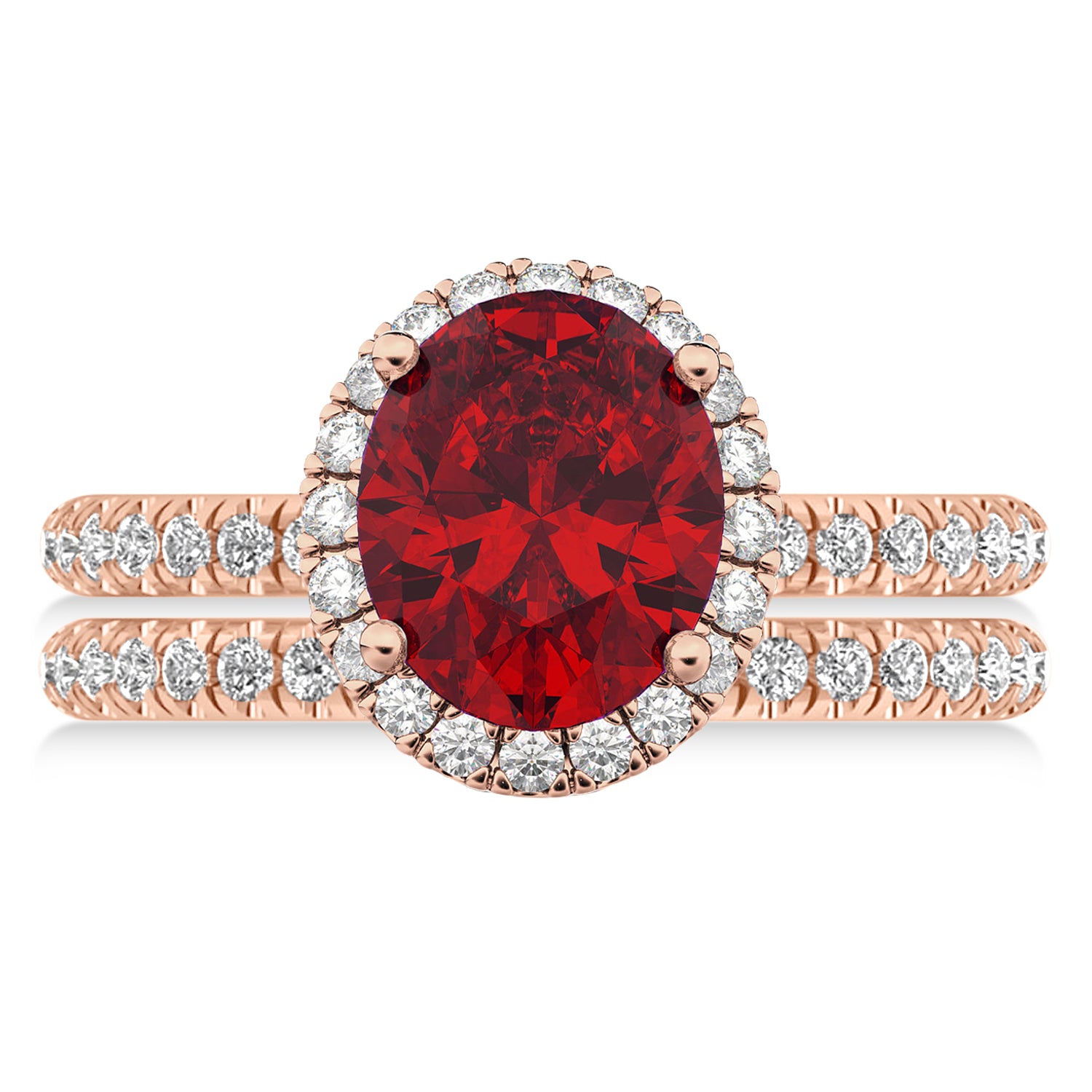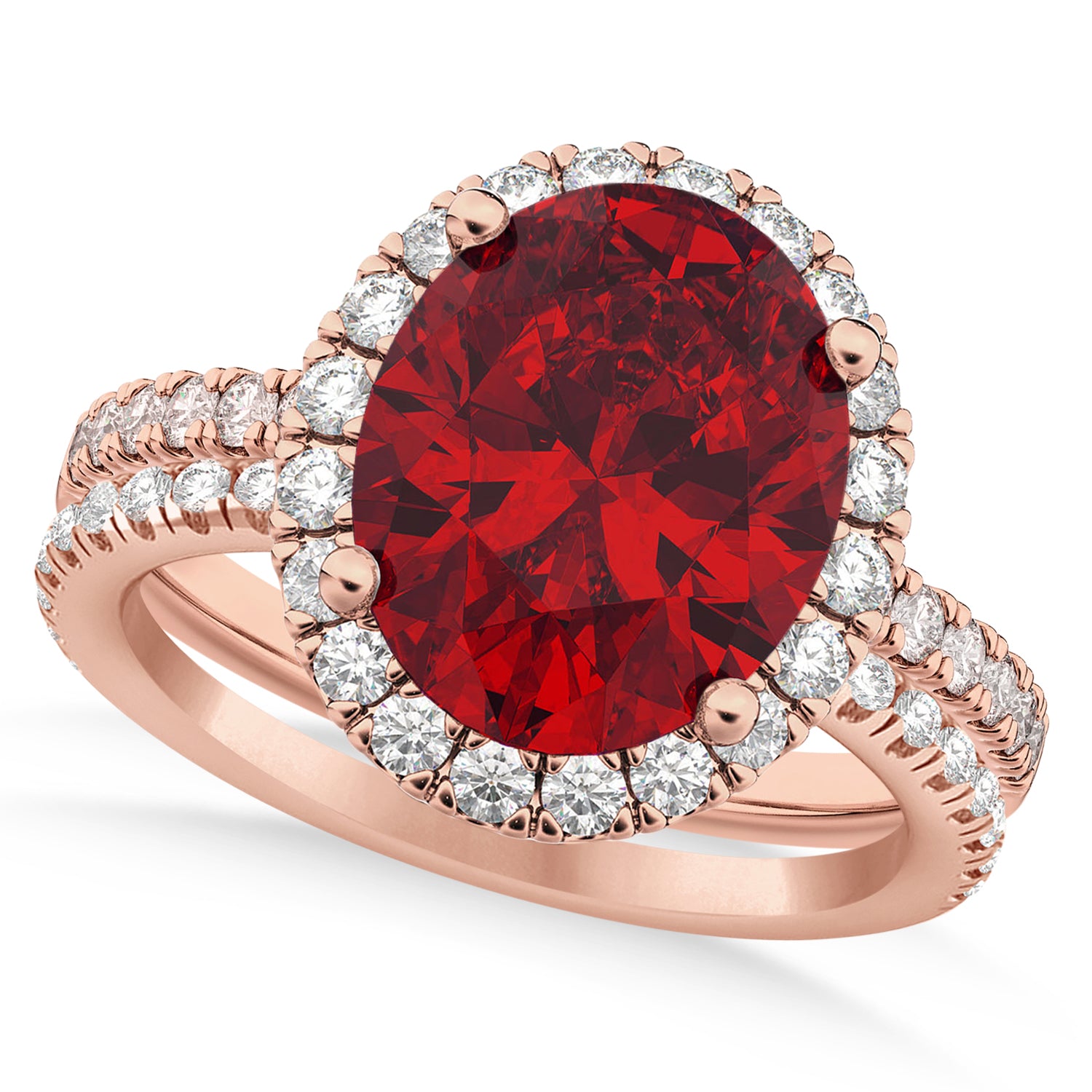 Ruby & Diamonds Oval-Cut Halo Bridal Set 14K Rose Gold (3.93ct)