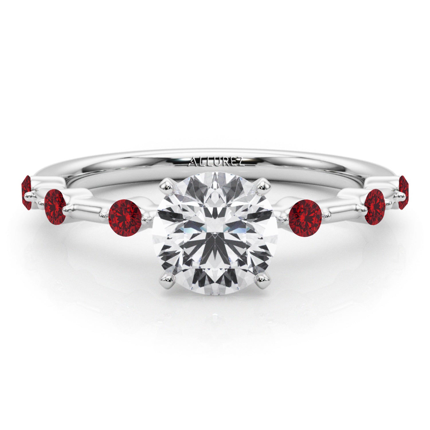 Indulge in timeless sophistication with our Ruby Scalloped Engagement Ring in Palladium, featuring a stunning 0.20ct. Meticulously crafted to the highest standards, this engagement ring showcases diamond of your choice and mesmerizing scalloped Rubys, ensuring exceptional quality and brilliance. With a myriad of customization options available, you have the freedom to tailor this ring to match your individual preferences and style. Whether for engagements, weddings, or as a remarkable gift, it radiates timeless beauty and charm.