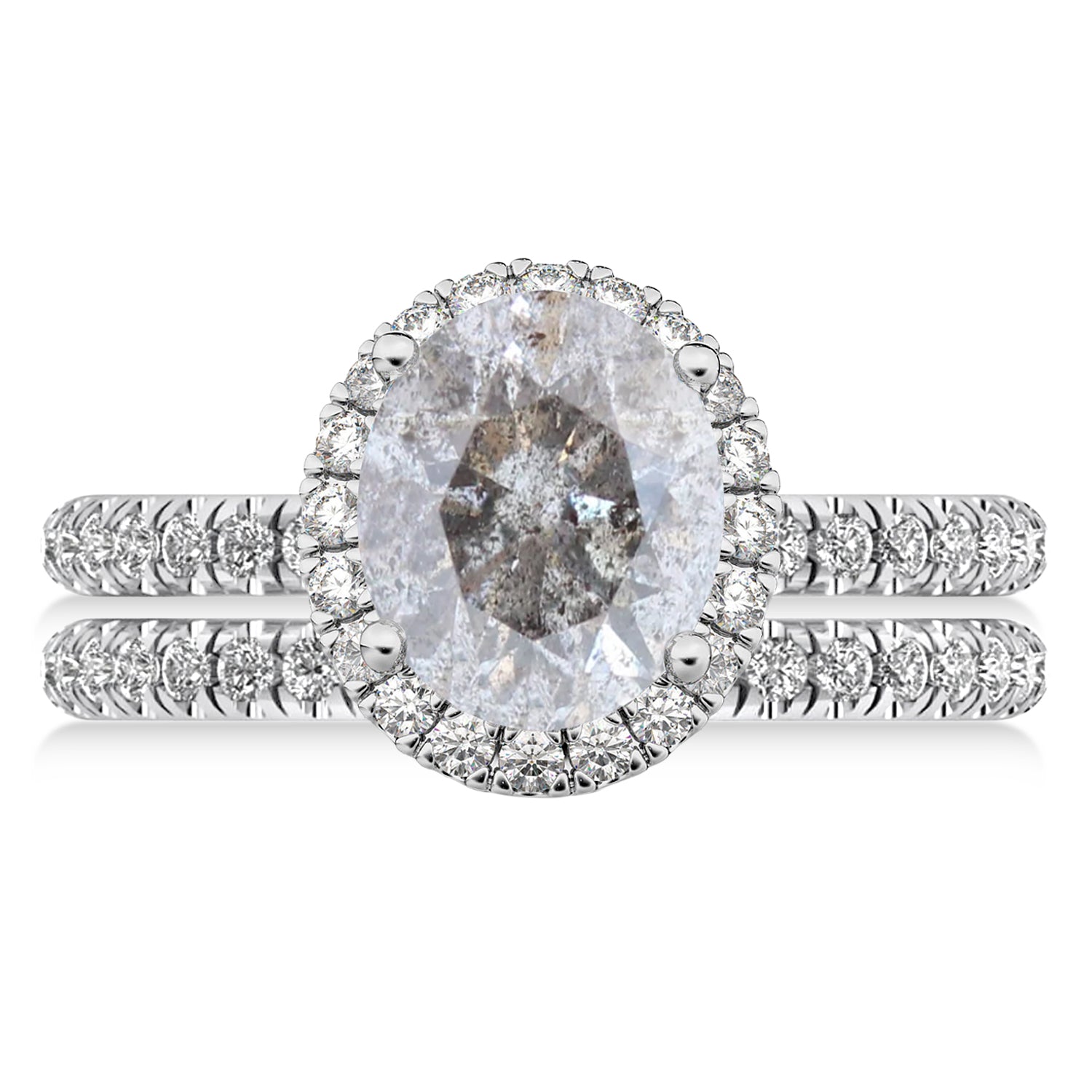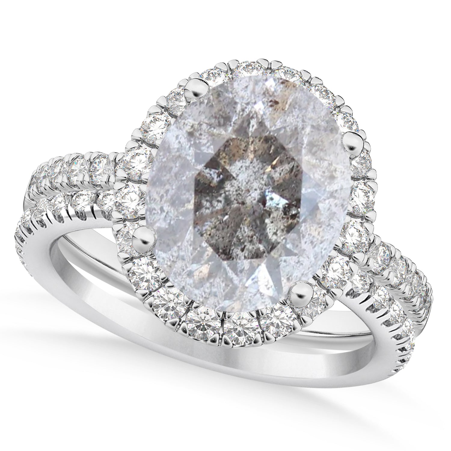 Salt & Pepper & White Diamonds Oval-Cut Halo Bridal Set 14K White Gold
