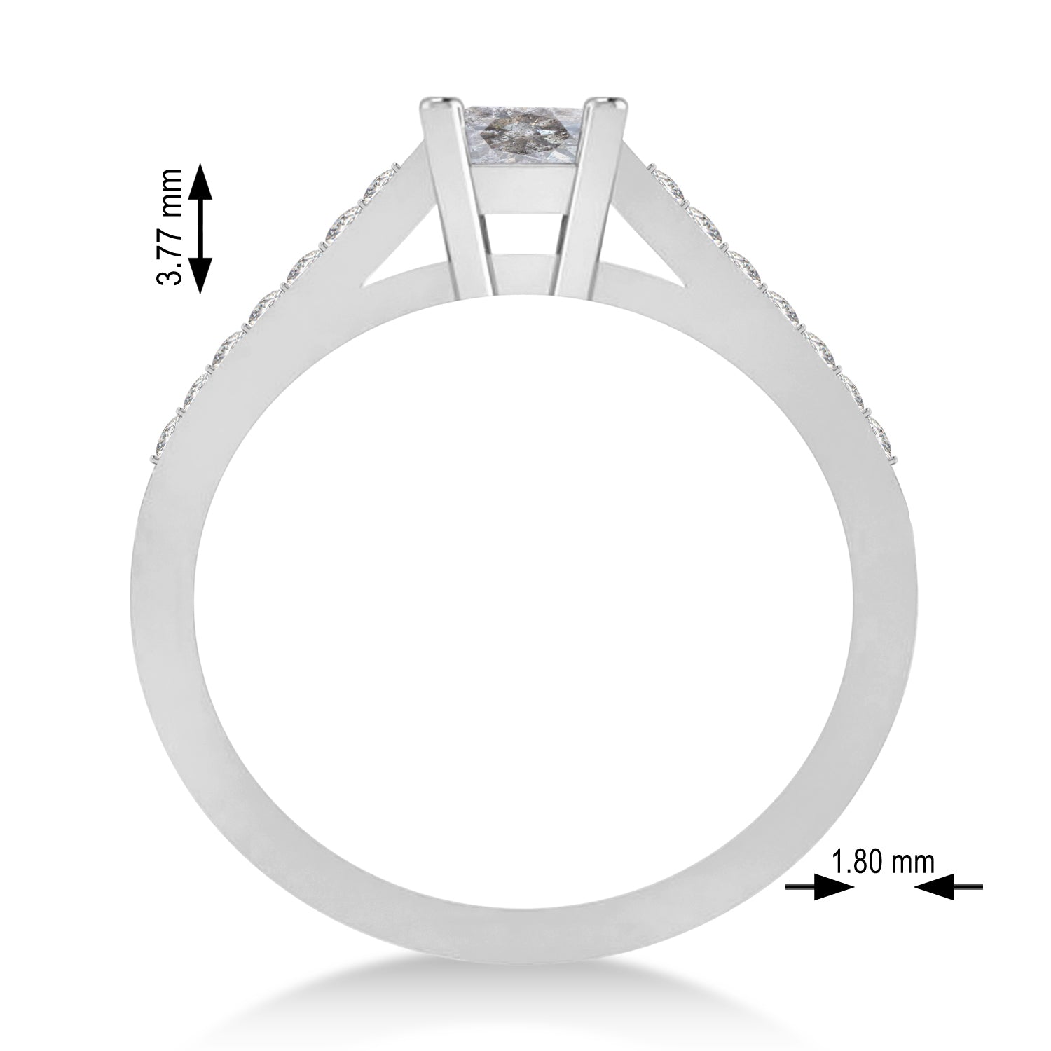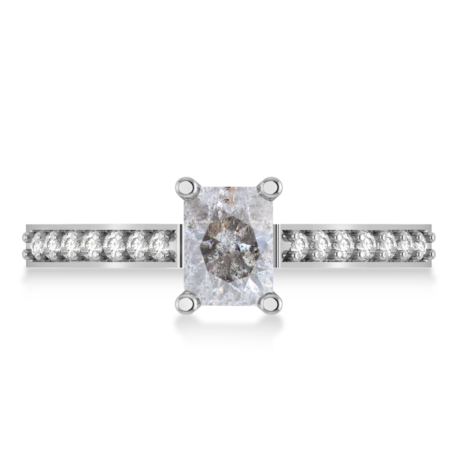Salt & Pepper & White Emerald-Cut Diamond Pre-Set Engagement Ring 14k White Gold (1.09ct)