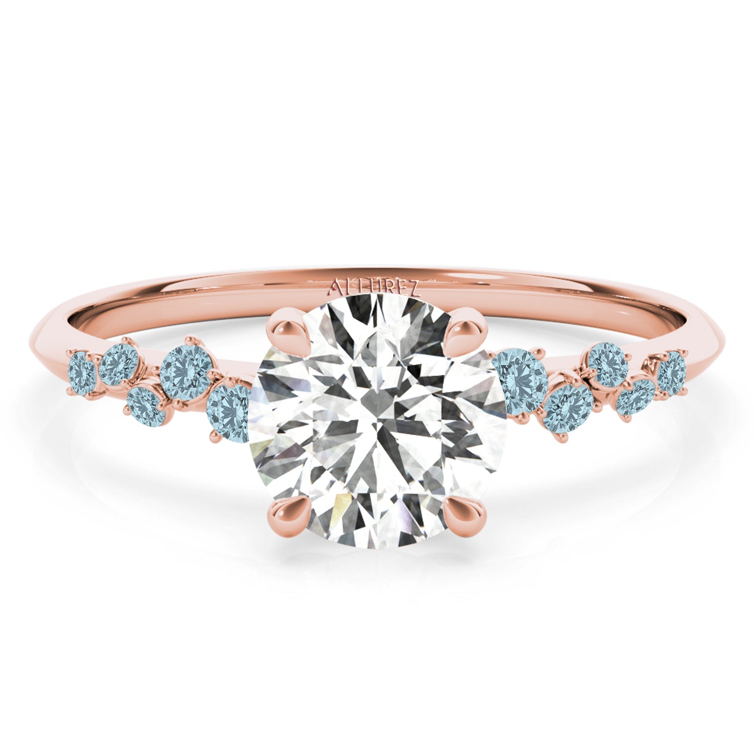 Discover the elegance of the Scattered Aquamarine Engagement Ring, crafted in 18K Rose Gold. Featuring a customizable center stone and 0.13-carat aquamarine accents, this ring is a stunning symbol of love and sophistication. With Allurez renowned craftsmanship, personal engraving, and appraisal options, create a timeless piece that reflects your unique style. Elevate your proposal with Allurez luxury.