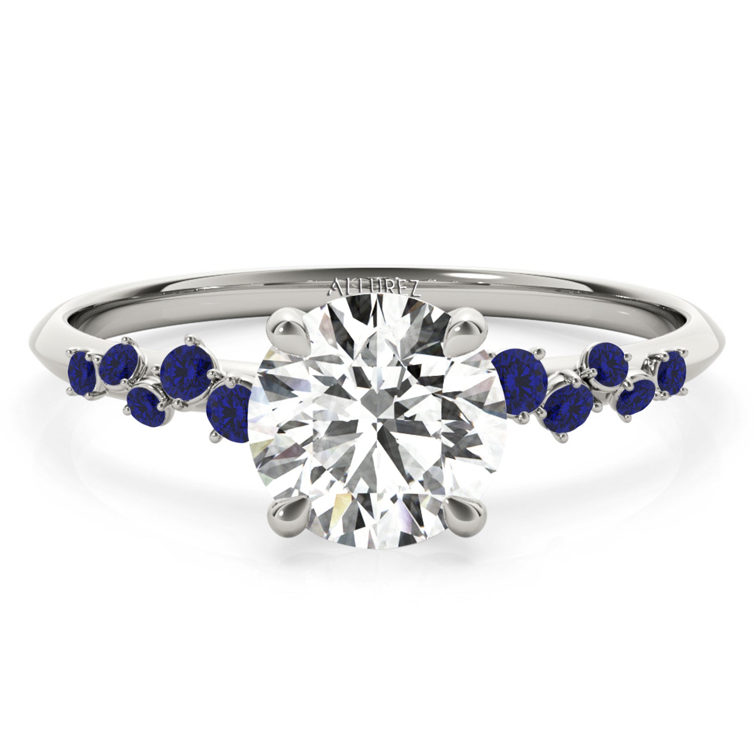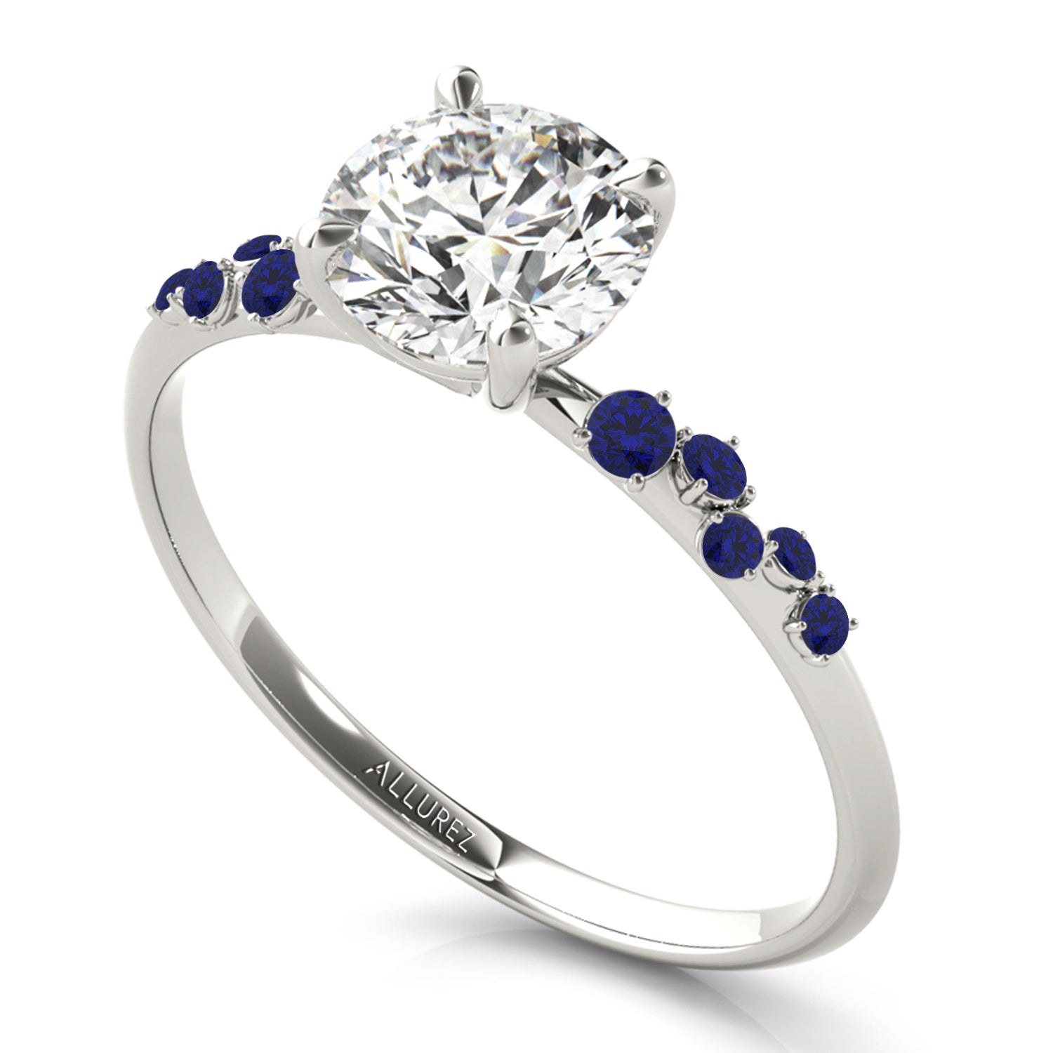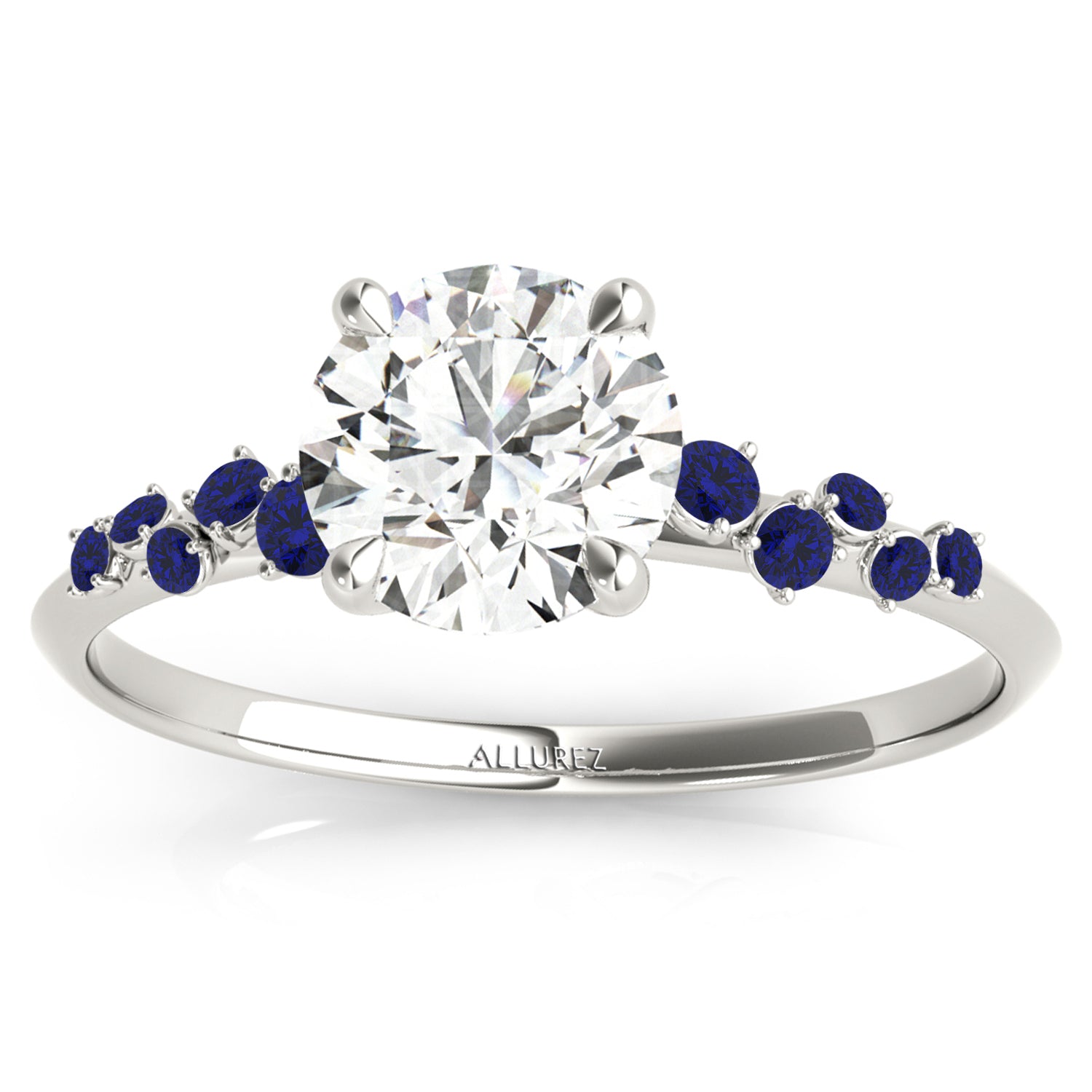 Experience the timeless beauty of the Scattered Blue Sapphire Engagement Ring, crafted in 14K White Gold. Featuring a customizable center stone and 0.13-carat sapphire accents, this elegant piece embodies love and sophistication. With Allurez exceptional craftsmanship, engraving, and appraisal options, create a meaningful ring that reflects your unique style. Make your proposal unforgettable with Allurez luxury.