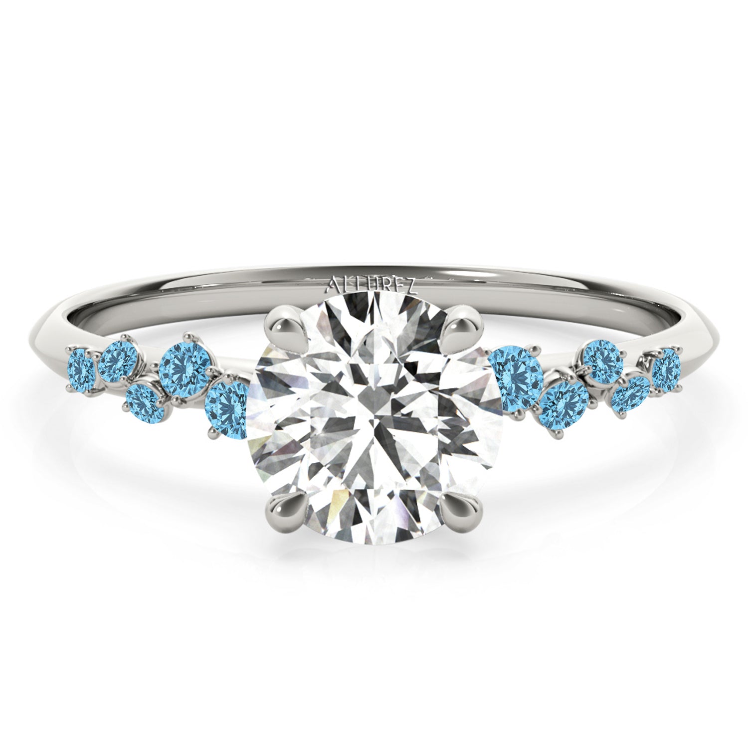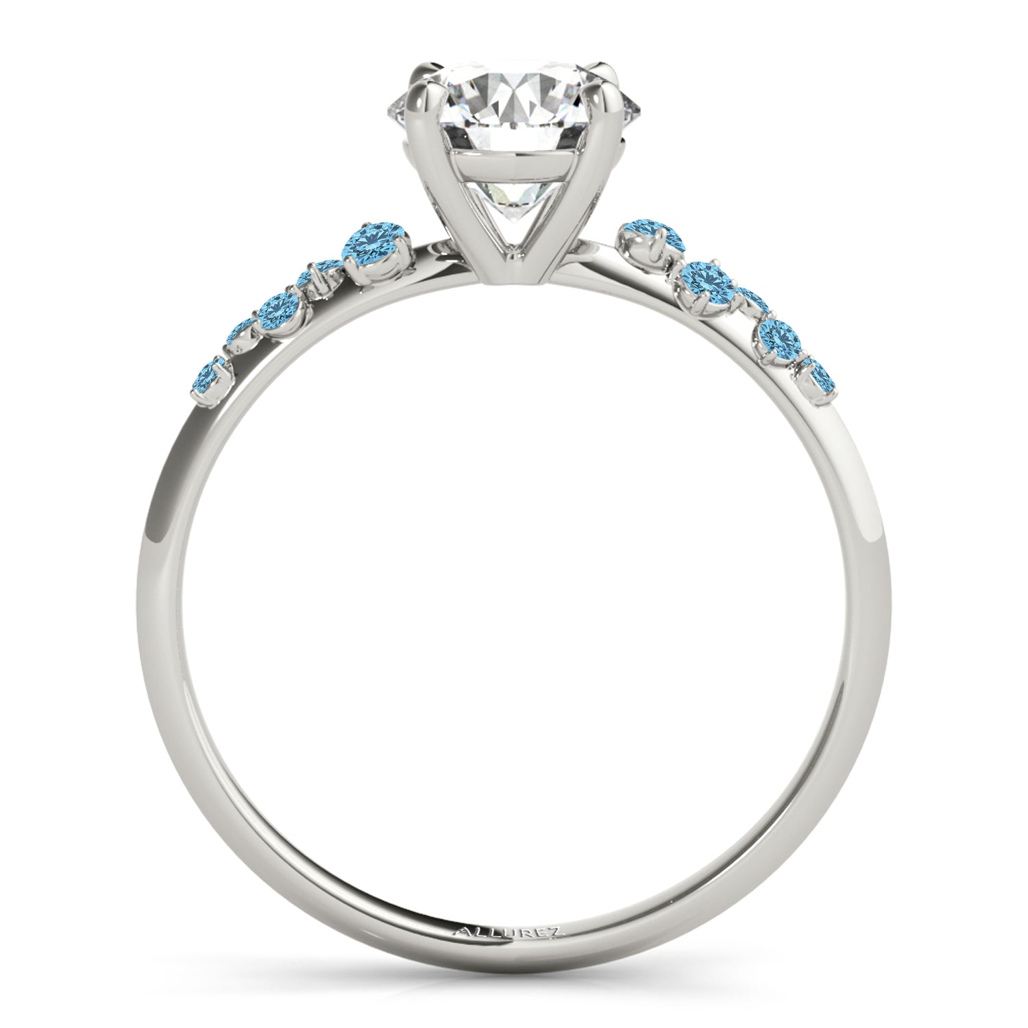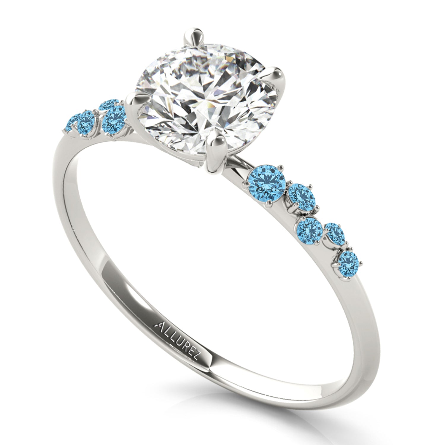 Discover the elegance of the Scattered Blue Topaz Engagement Ring, crafted in 14K White Gold. Featuring a customizable center stone and 0.13-carat blue topaz accents, this exquisite ring symbolizes love and sophistication. With Allurez renowned craftsmanship, engraving, and appraisal options, create a timeless piece that reflects your unique style. Elevate your proposal with the luxury of Allurez.