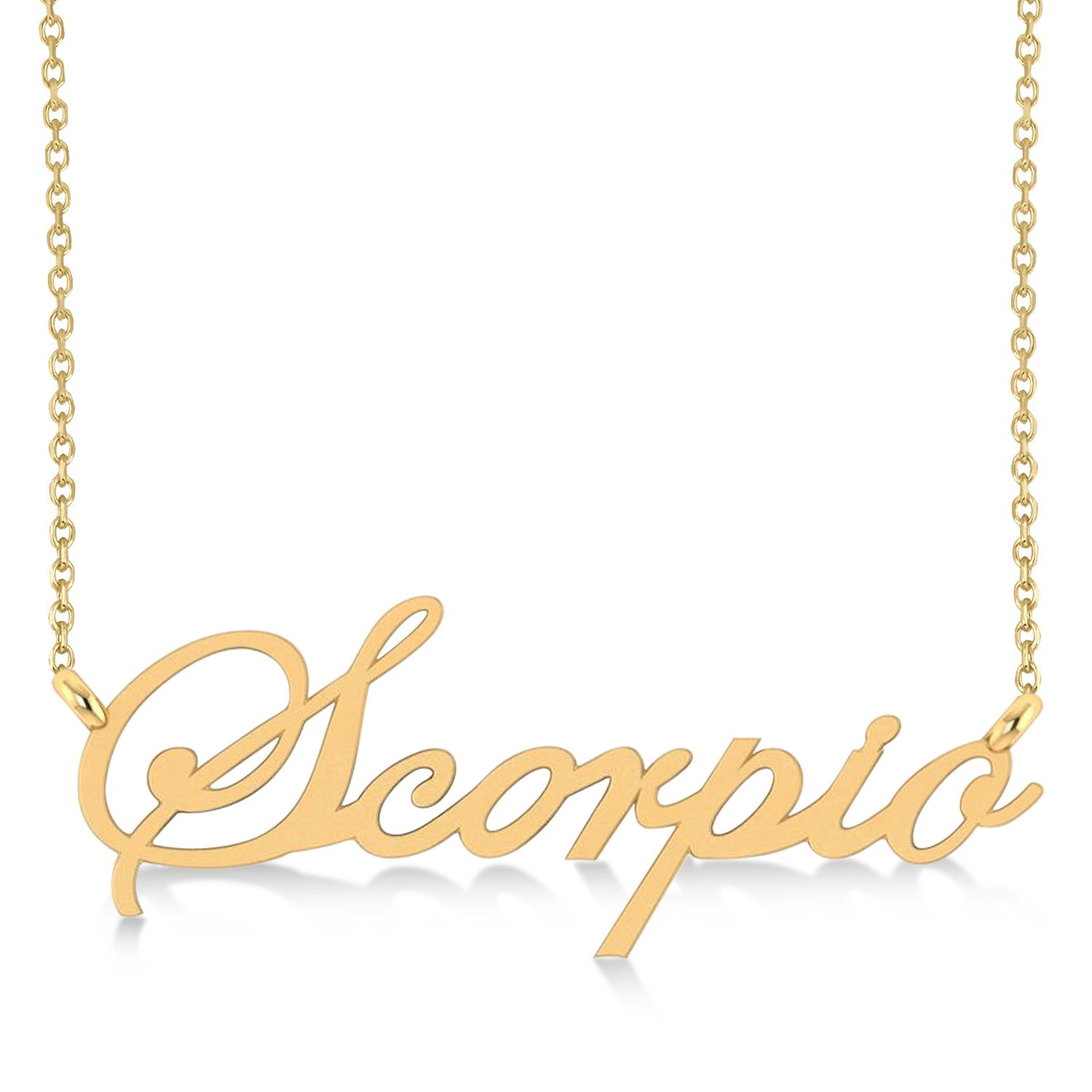 Scorpio Zodiac Text Pendant Necklace 14k Yellow Gold