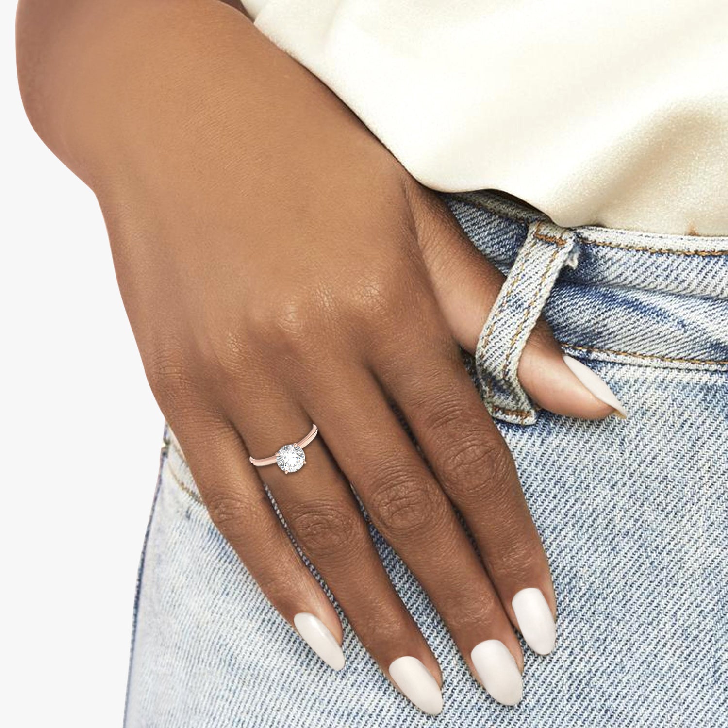 Showcase your choice of round diamond in this gorgeous six-prong solitaire engagement ring.