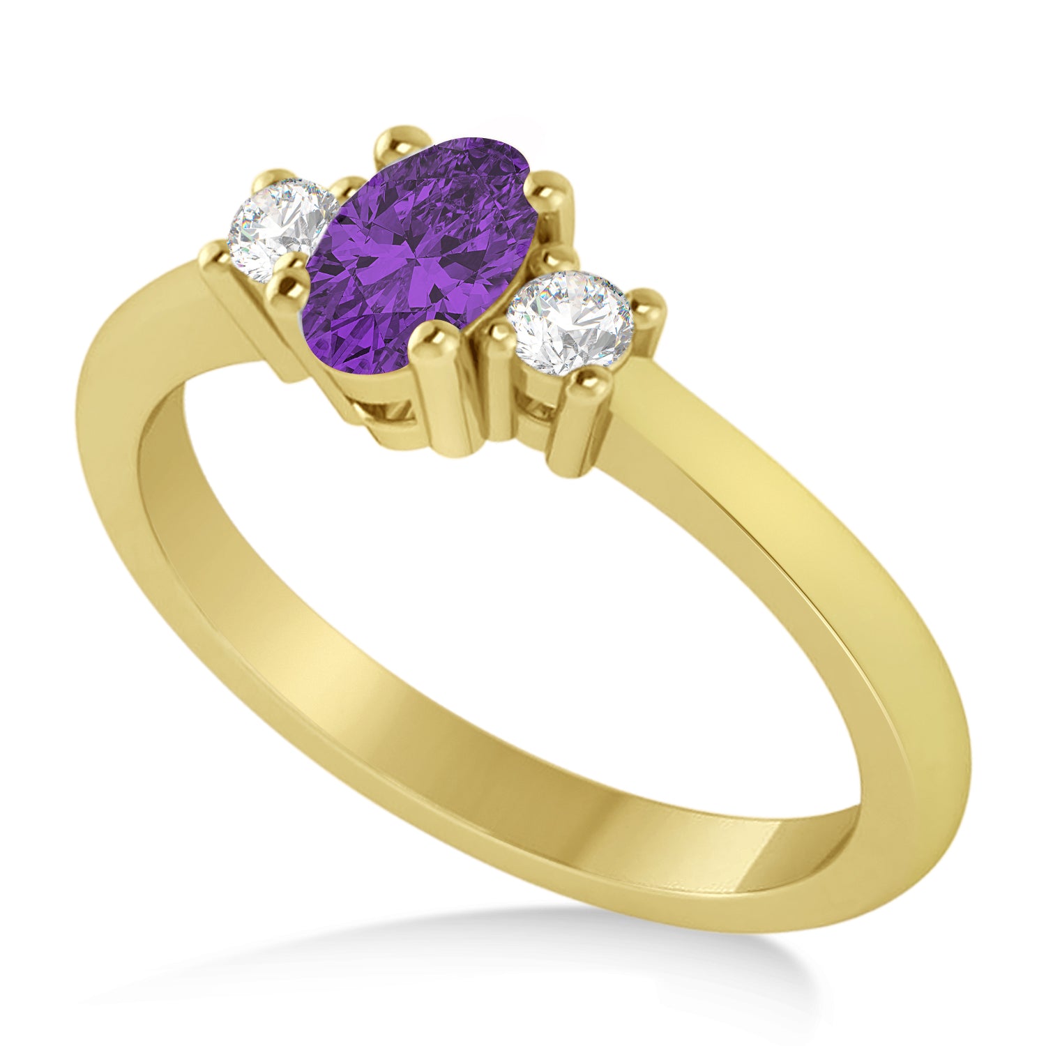 Small Oval Amethyst & Diamond Three-Stone Engagement Ring 14k Yellow Gold (0.60ct)