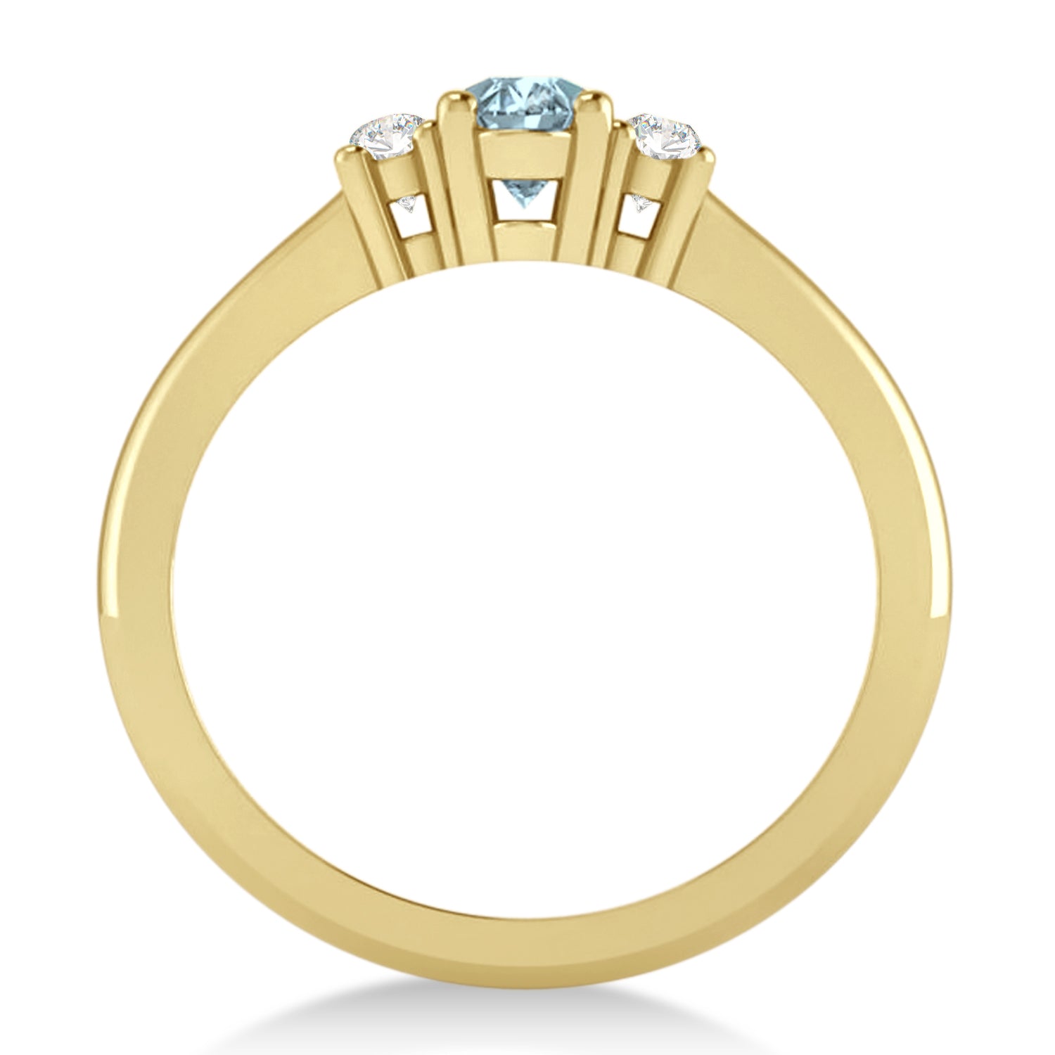 Small Oval Aquamarine & Diamond Three-Stone Engagement Ring 14k Yellow Gold (0.60ct)