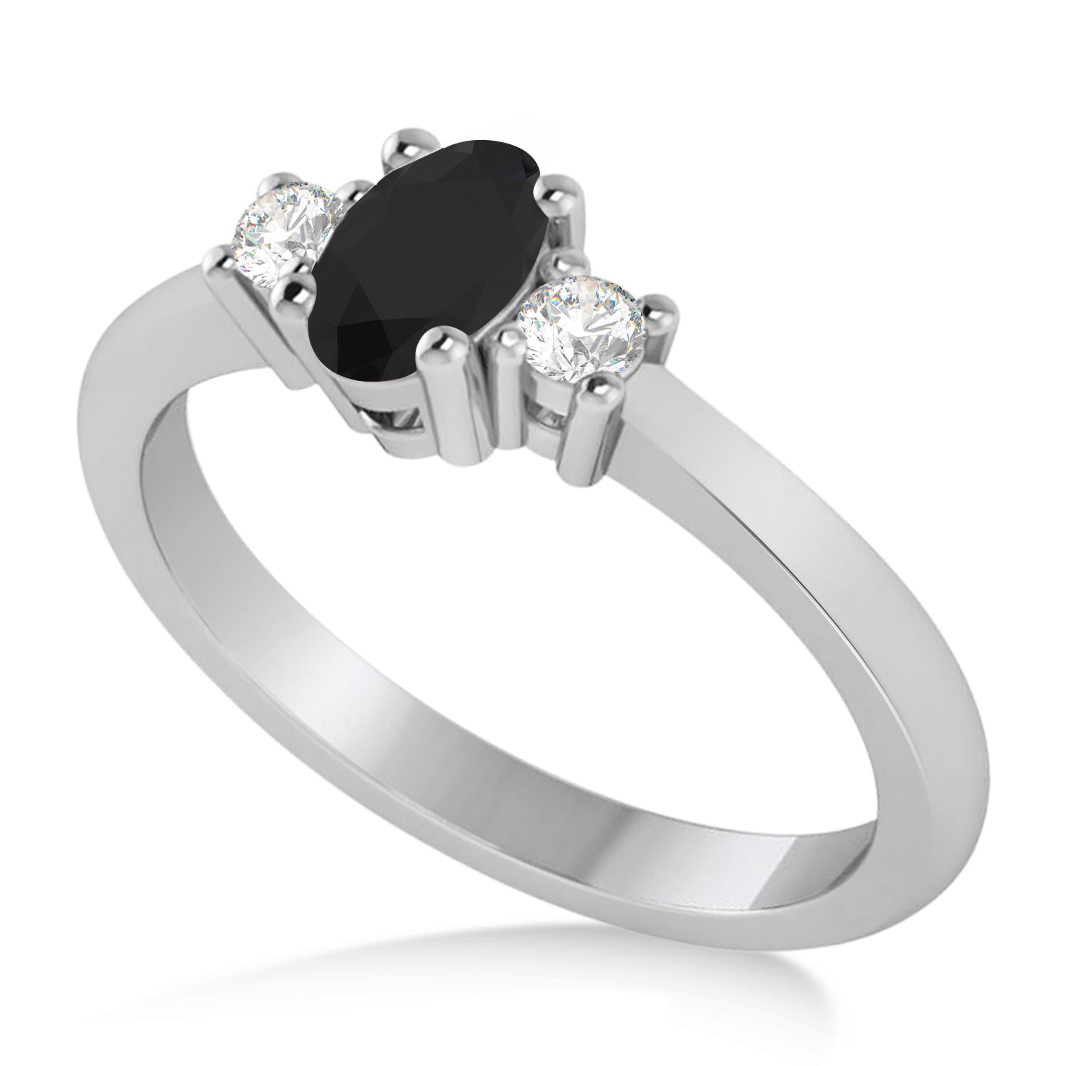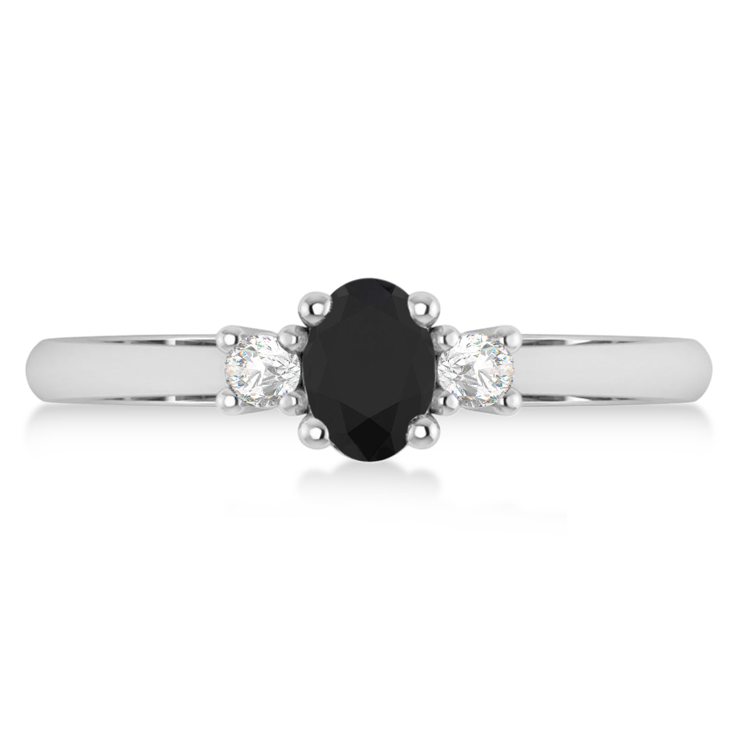 Small Oval Black & White Diamond Three-Stone Engagement Ring 14k White Gold (0.60ct)
