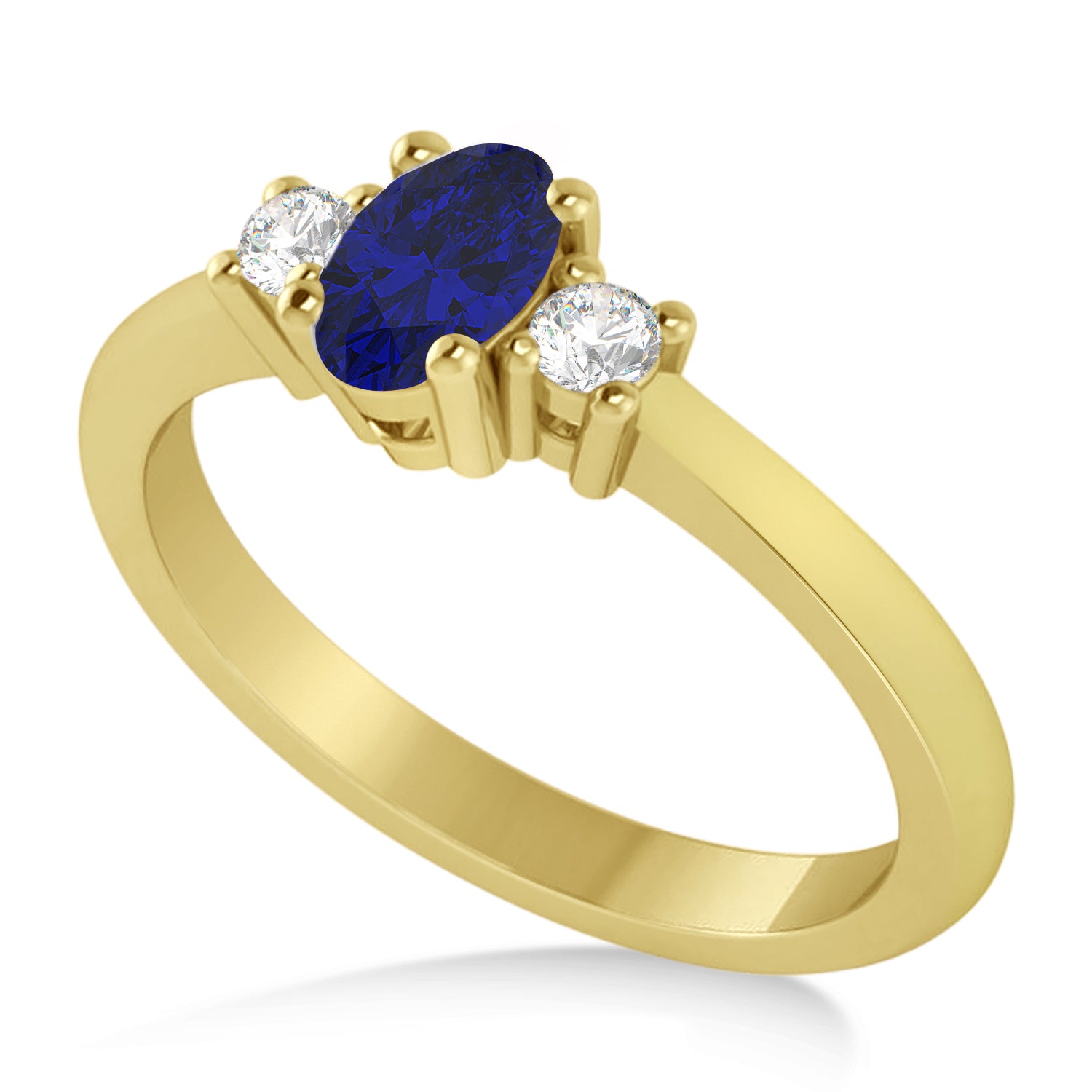 Small Oval Blue Sapphire & Diamond Three-Stone Engagement Ring 14k Yel
