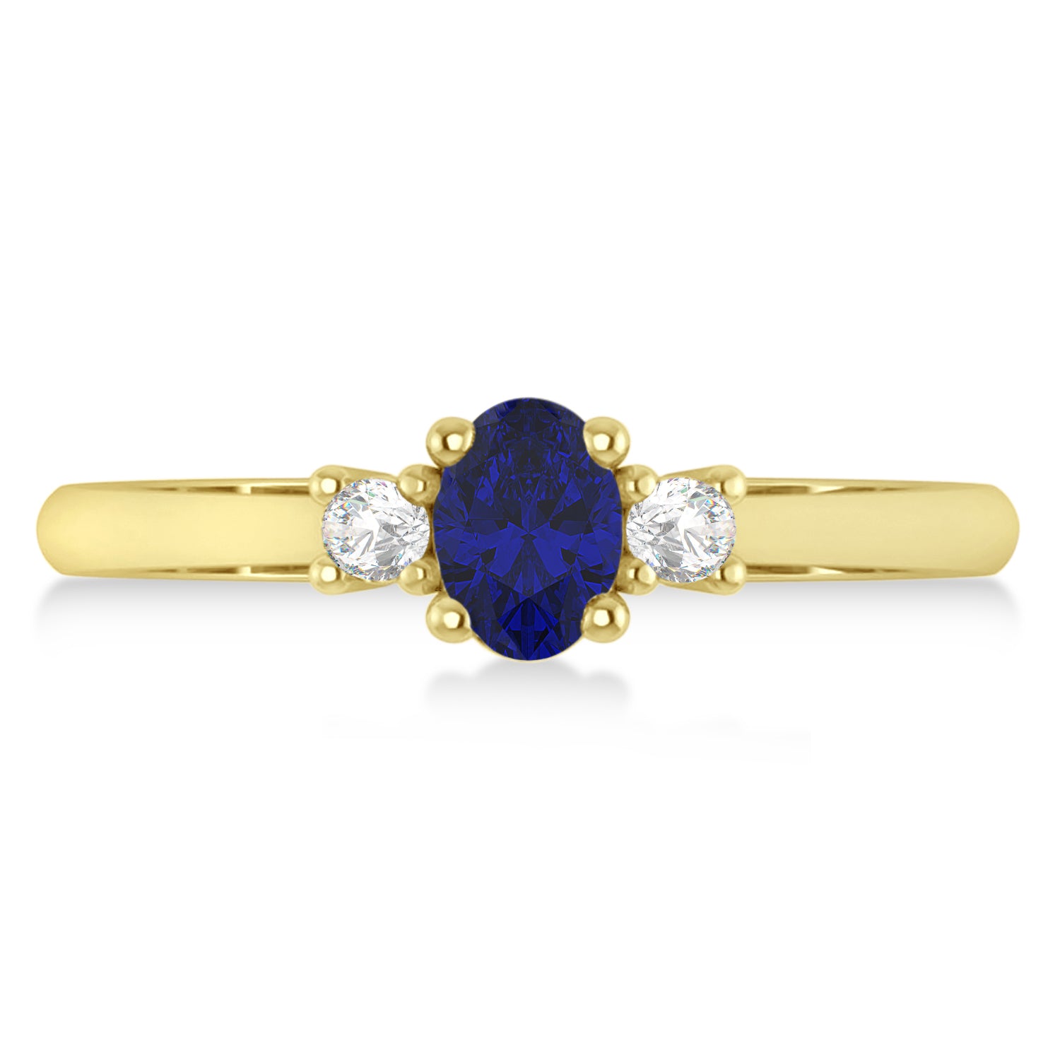 Small Oval Blue Sapphire & Diamond Three-Stone Engagement Ring 14k Yellow Gold (0.60ct)