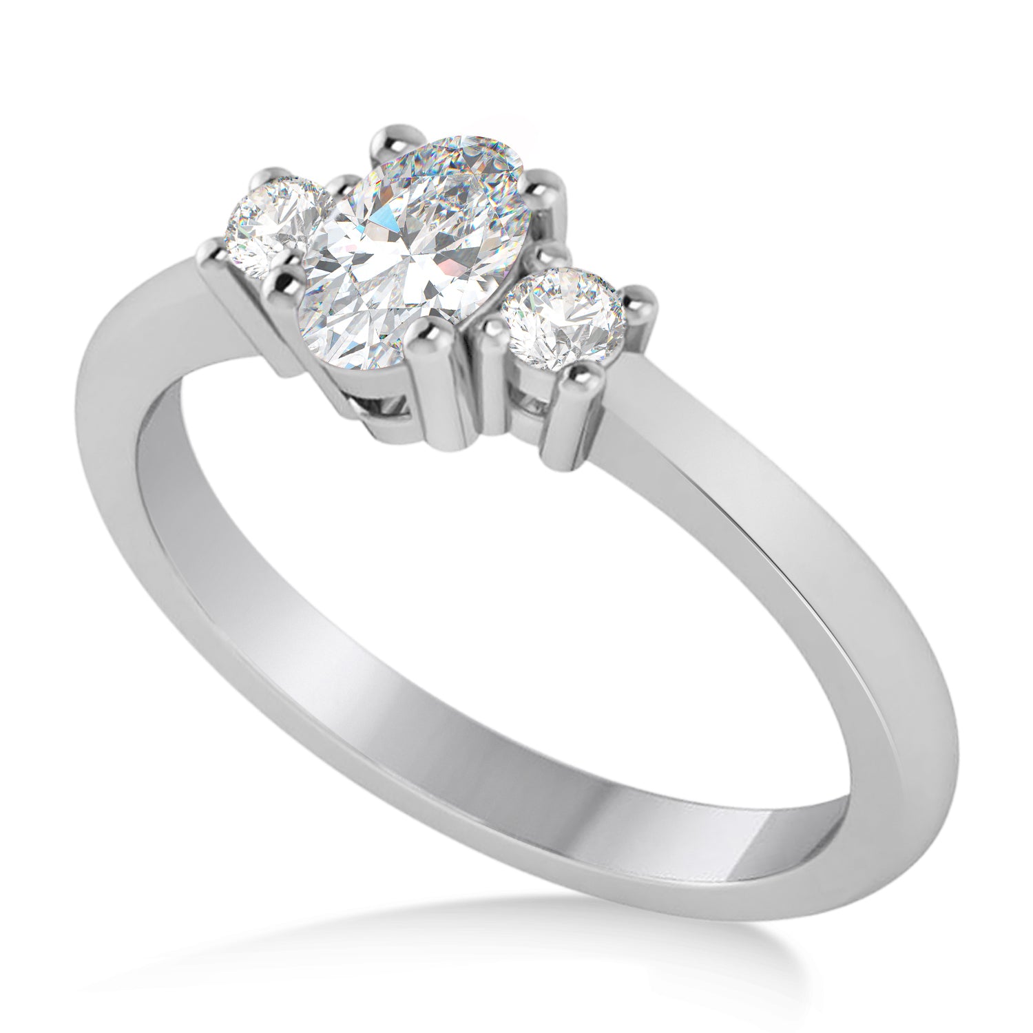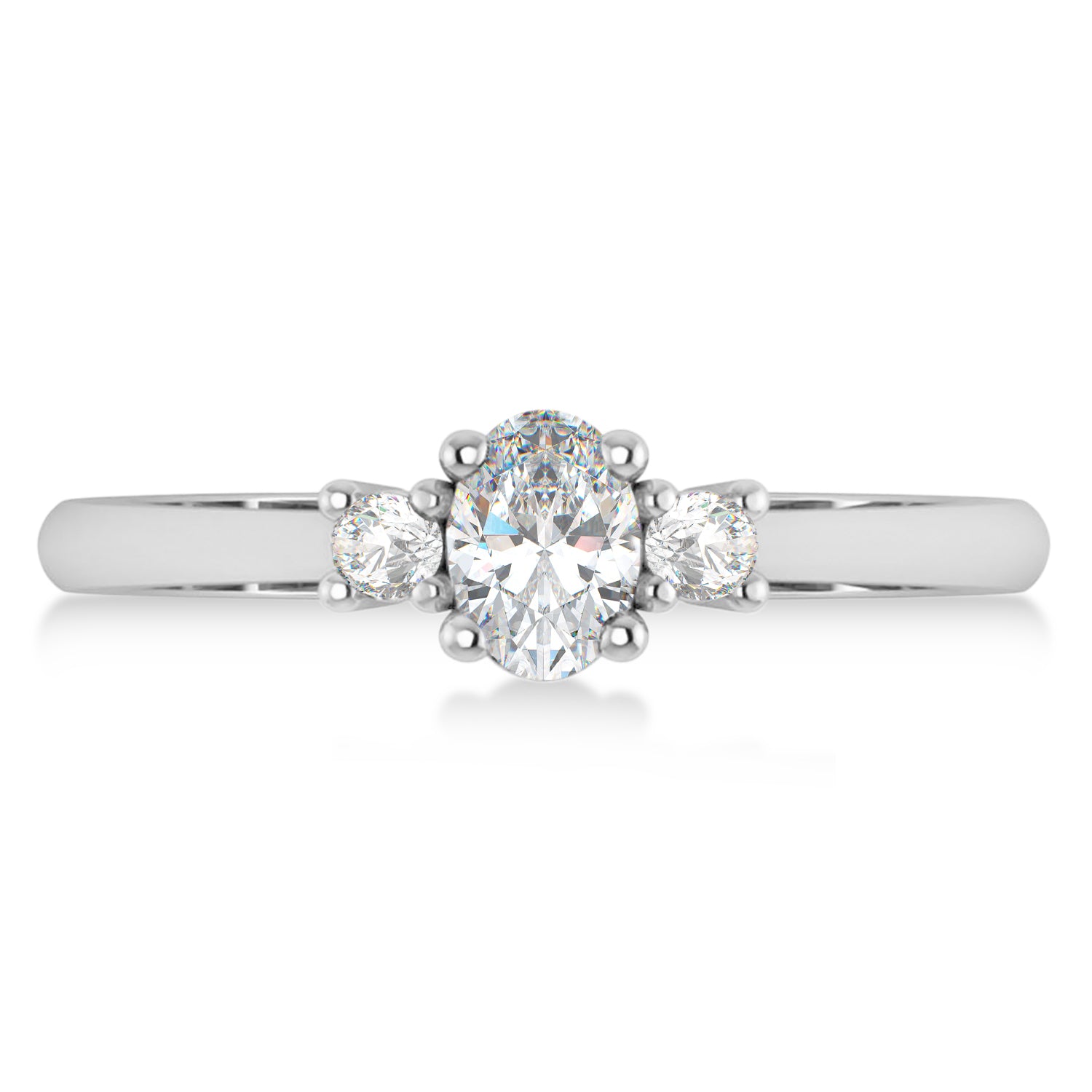 Small Oval Moissanite & Diamond Three-Stone Engagement Ring 14k White Gold (0.60ct)