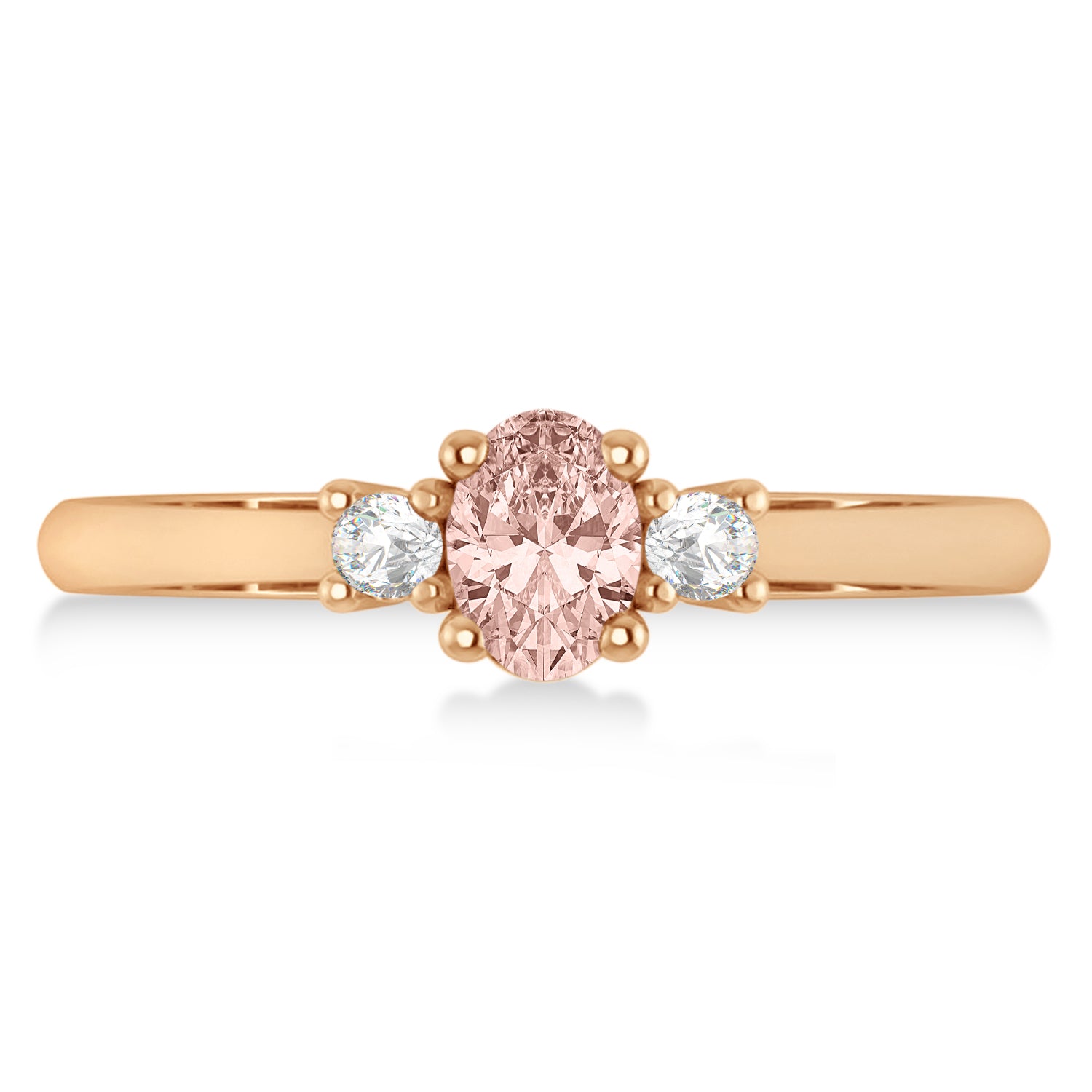 Small Oval Morganite & Diamond Three-Stone Engagement Ring 14k Rose Gold (0.60ct)