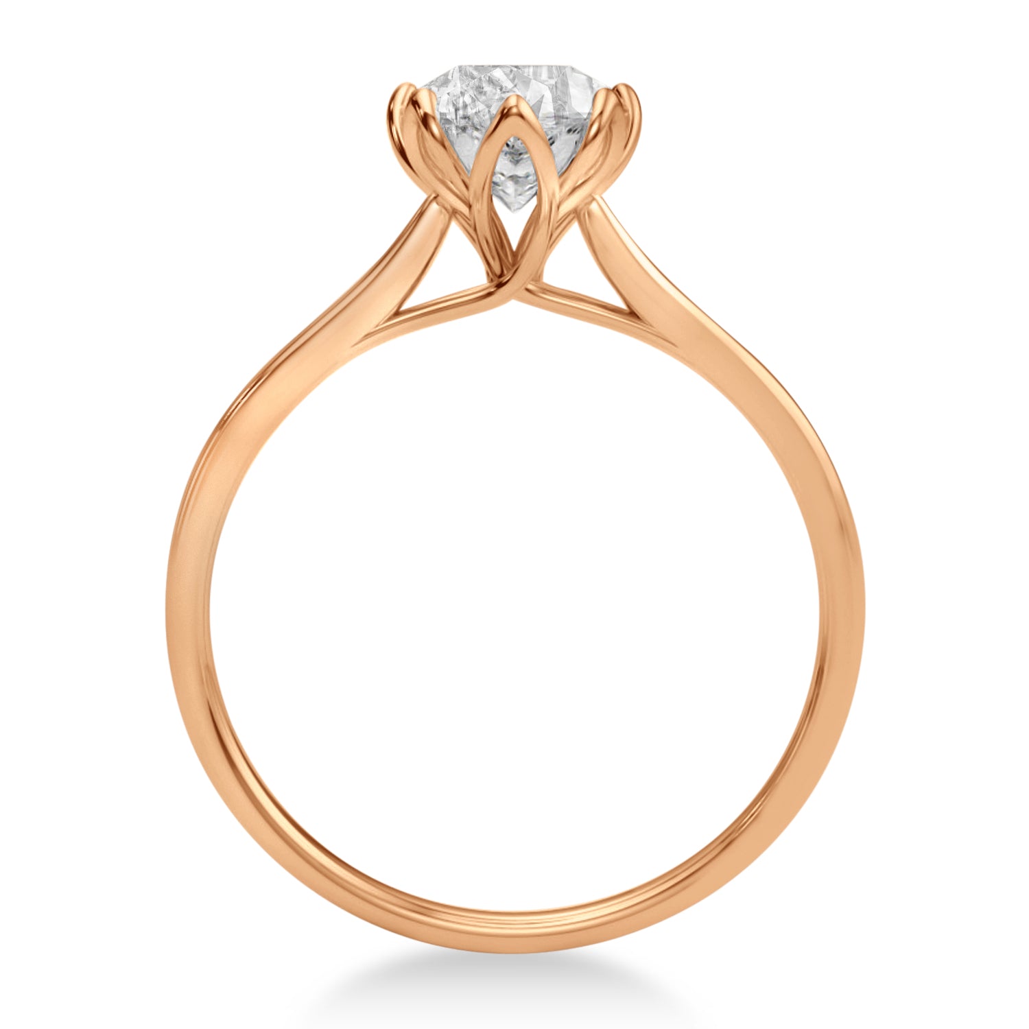 This contemporary solitaire diamond engagement ring setting is crafted in 14k Rose Gold. The engagement ring can be set with a pear-cut center stone of your decided carat weight.