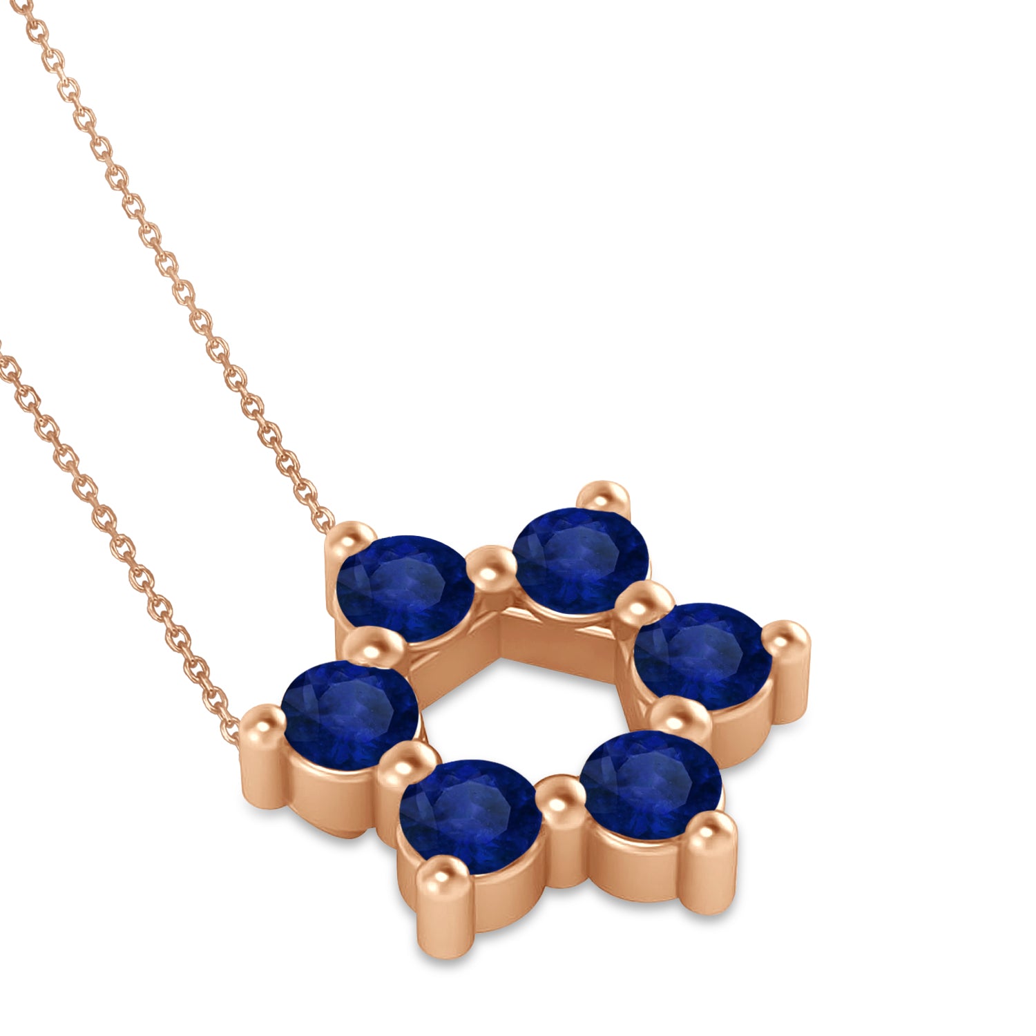 Star of David Blue Sapphire Pendant Necklace 14K Rose Gold (1.20ct)