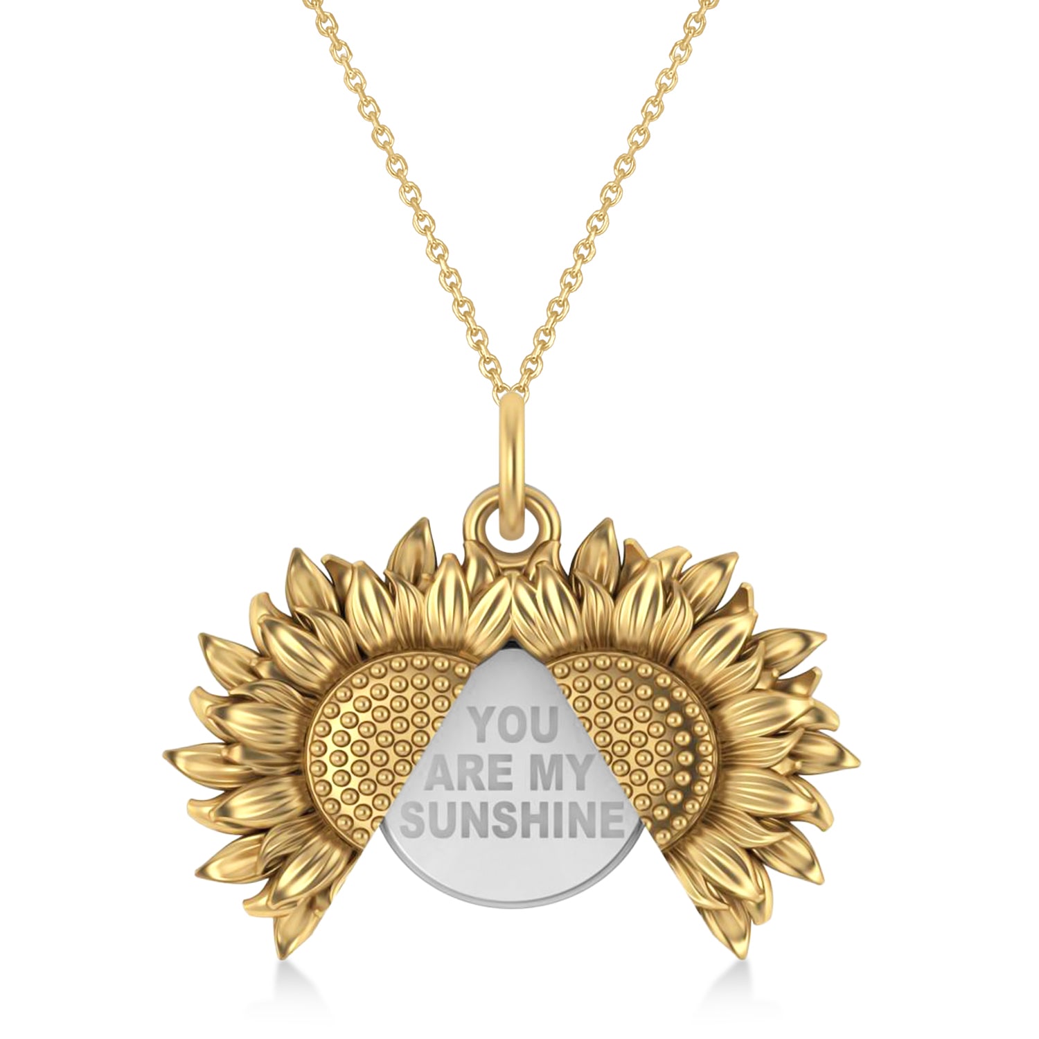 Sunflower You Are My Sunshine Pendant Necklace 14K Two-Tone Yellow Gold Symbol of Love and Positivity