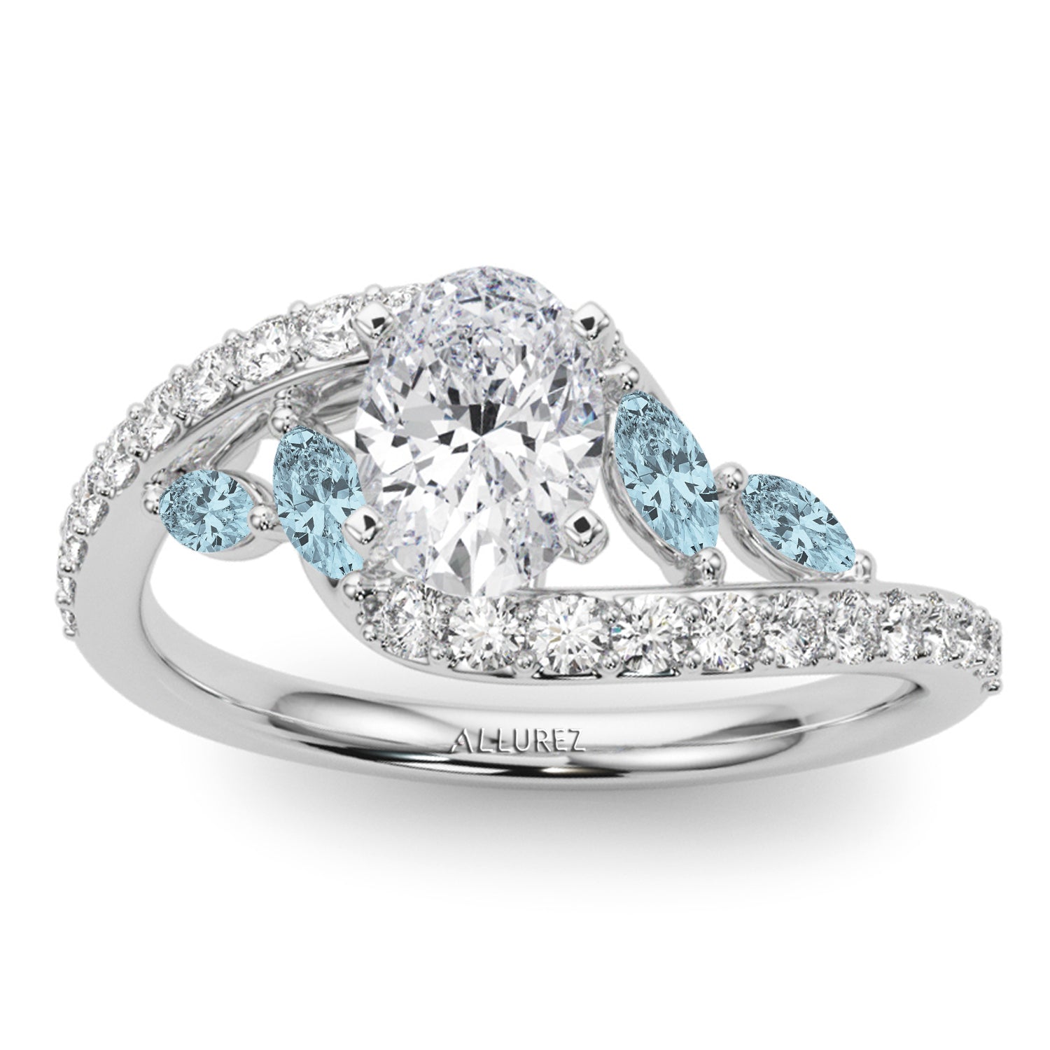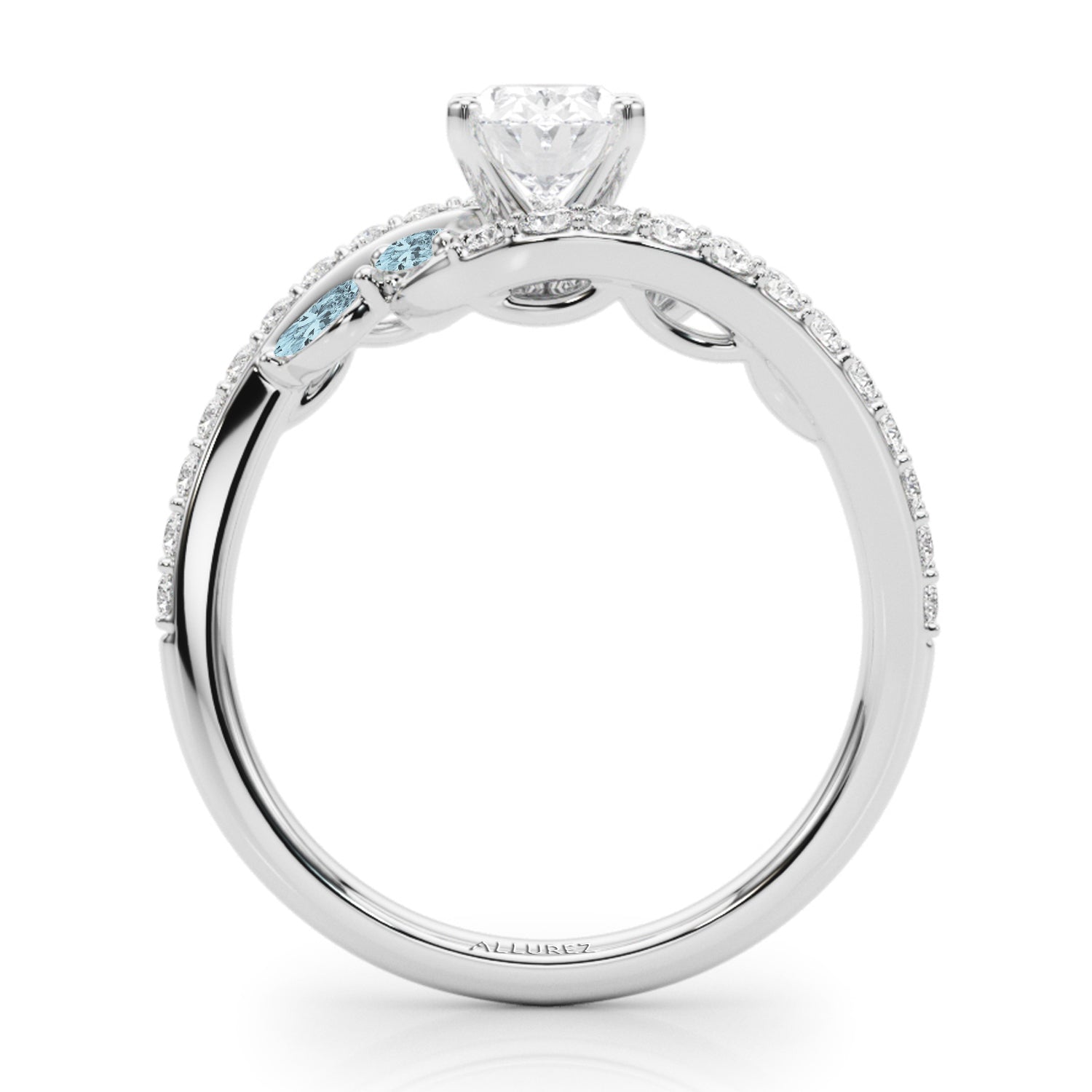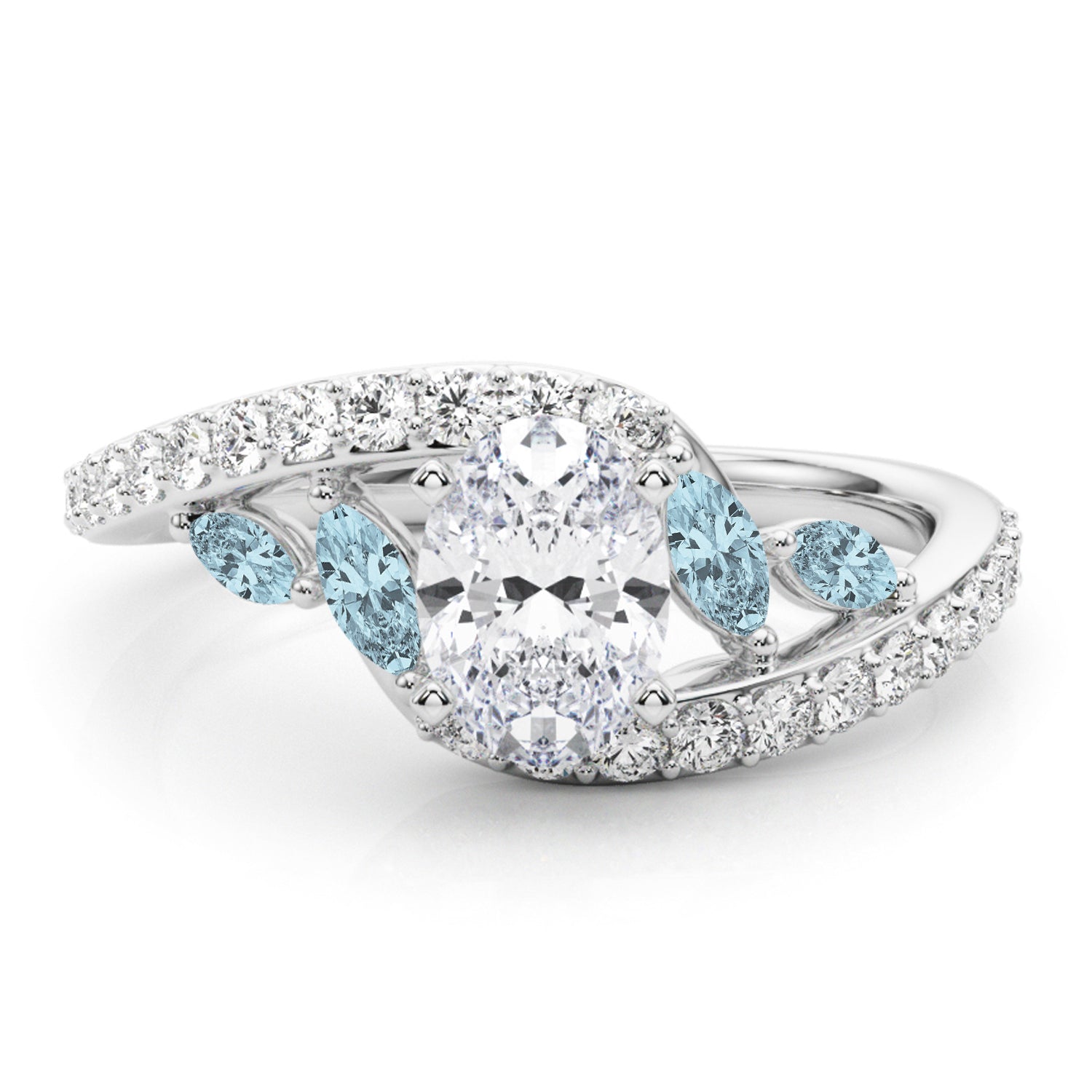 Experience the charm of our Swirl Design Diamond & Marquise Aquamarine Engagement Ring, beautifully crafted...