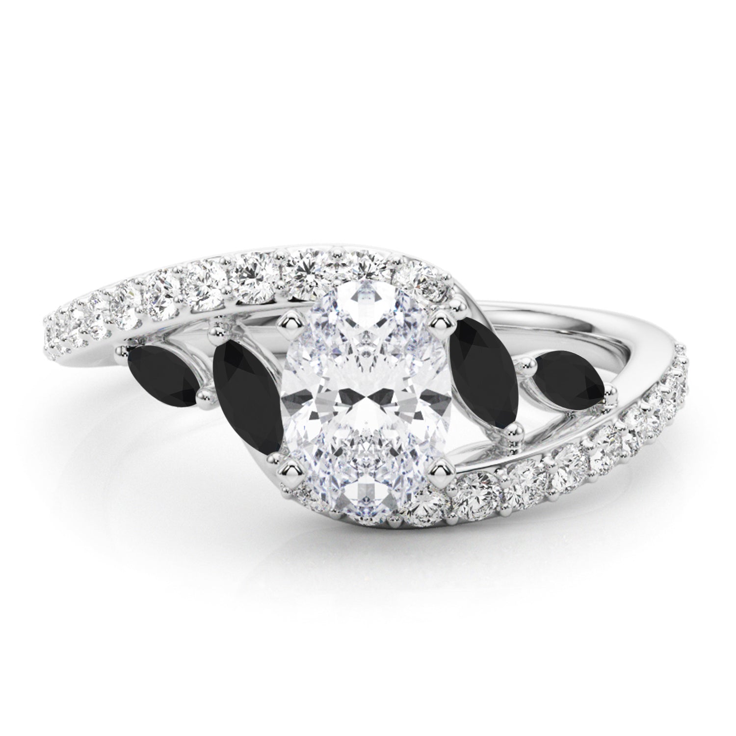 Embrace the bold elegance of our Swirl Design Diamond & Marquise Black Diamond Engagement Ring,...