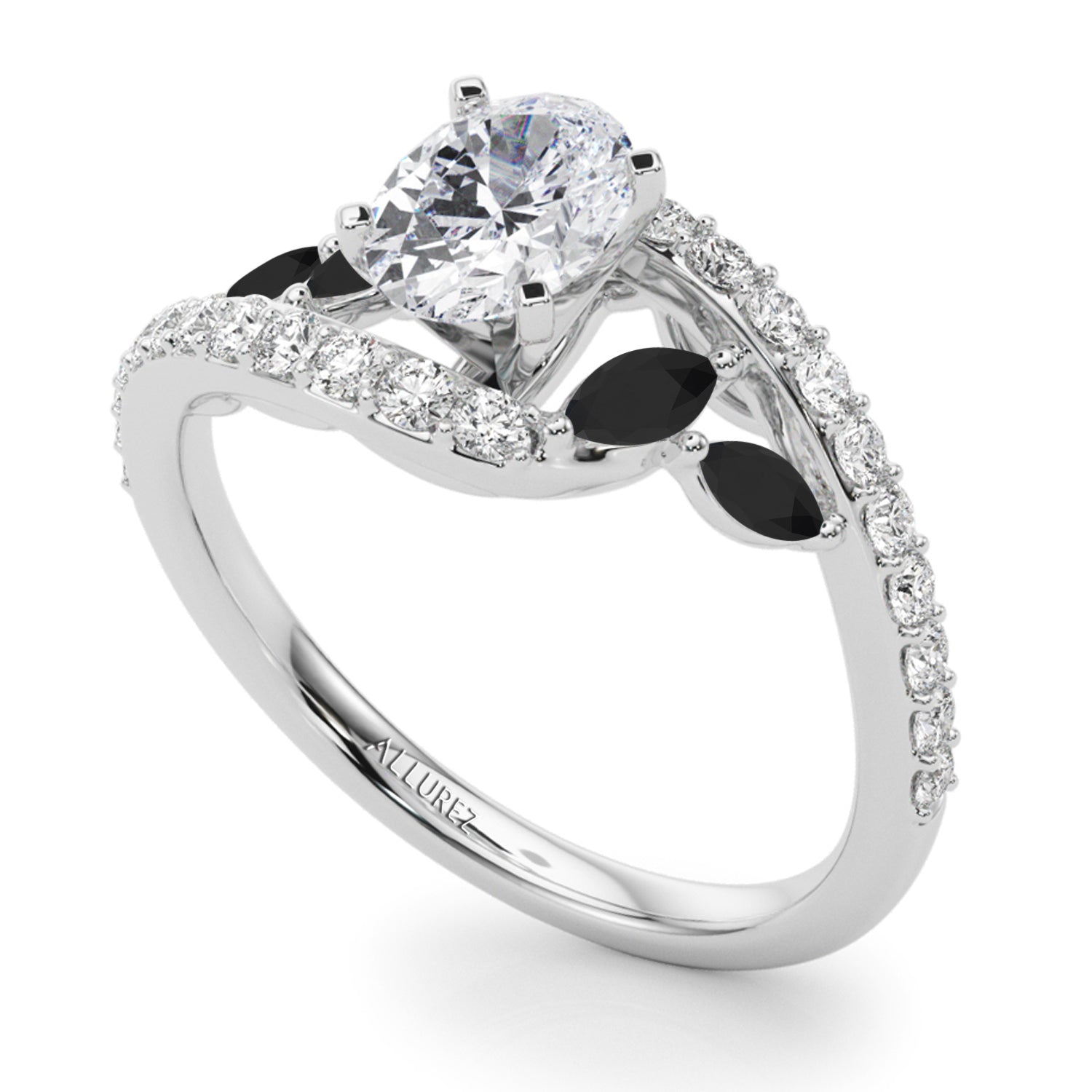Swirl Design Diamond & Marquise Black Diamond Engagement Ring 18K White Gold (0.63ct)