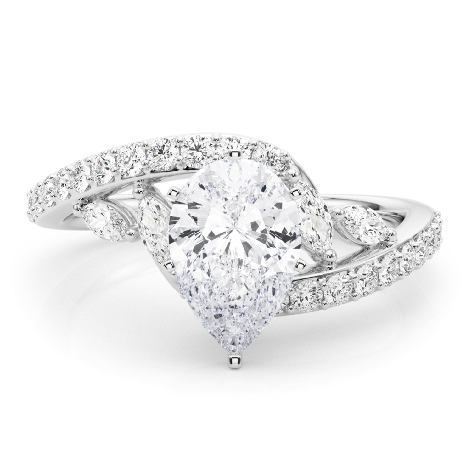 Swirl Design Diamond & Marquise Bridal Set in Palladium (0.96ct)