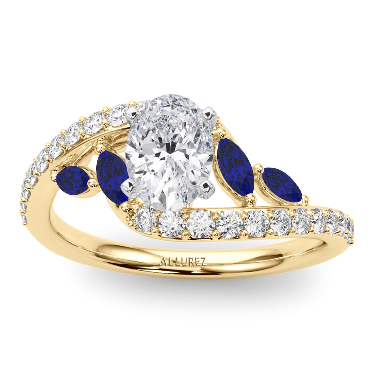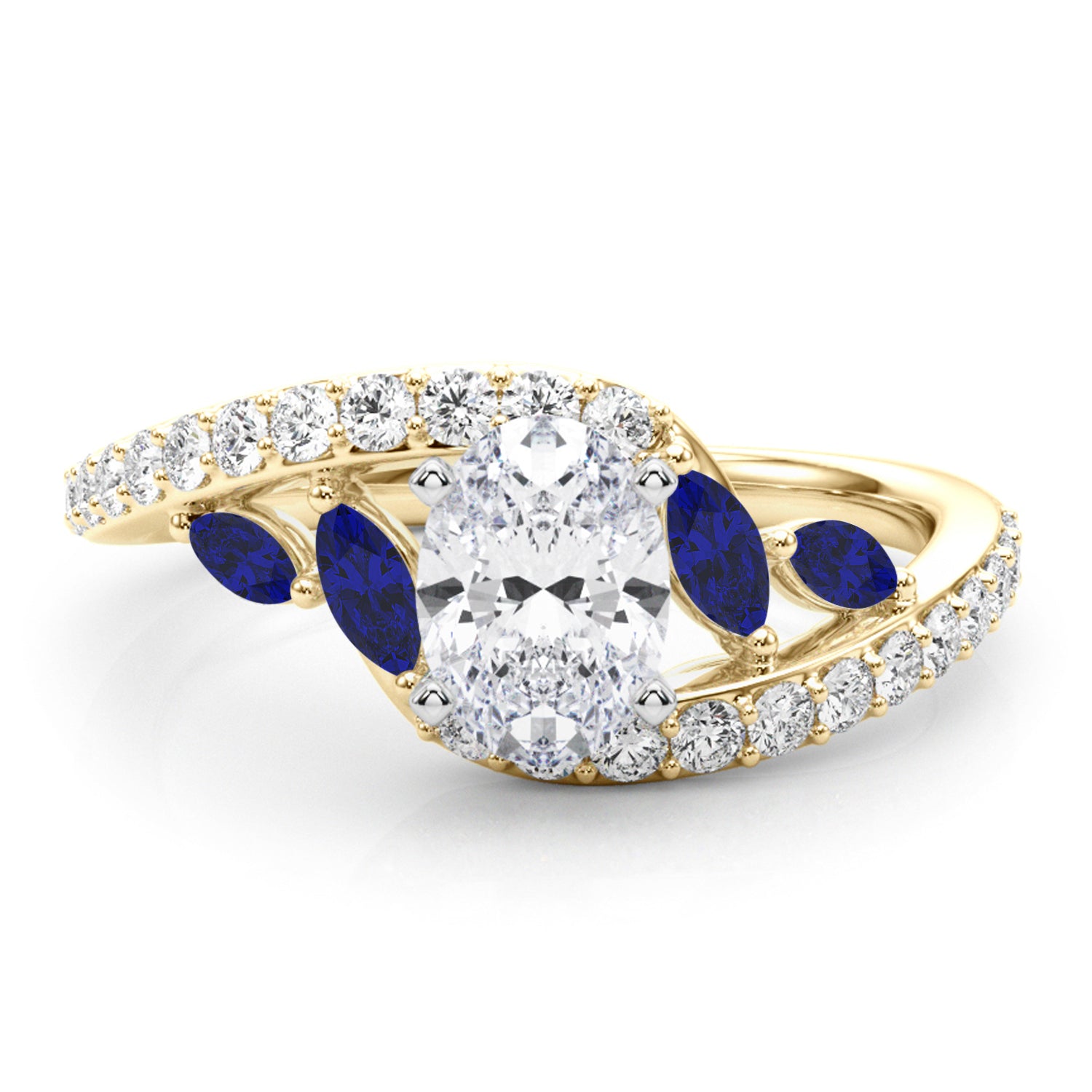 Swirl Design Diamond & Marquise Sapphire Engagement Ring 14K Yellow Gold (0.63ct)