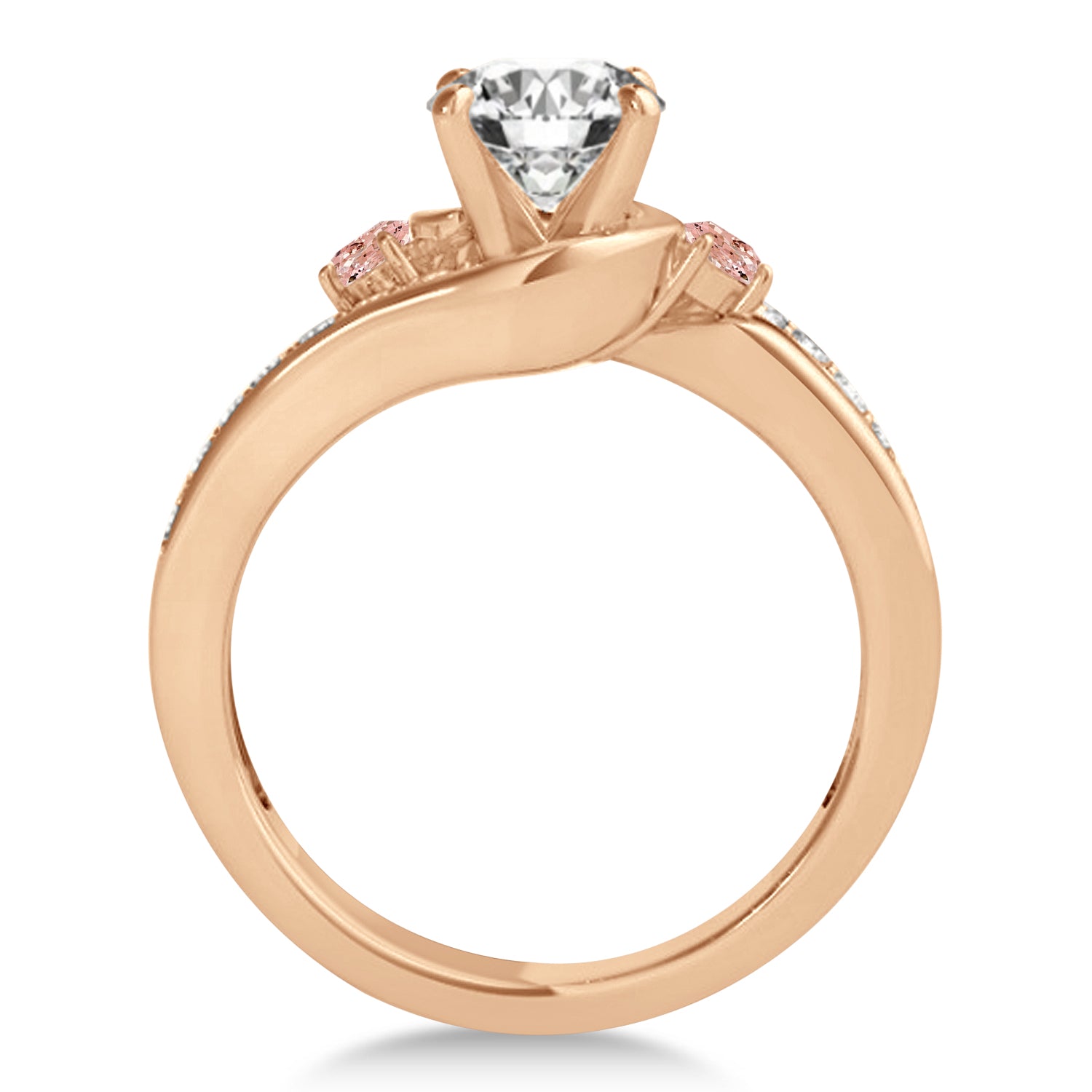 Swirl Design Morganite & Diamond Engagement Ring Setting 14k Rose Gold 0.38ct