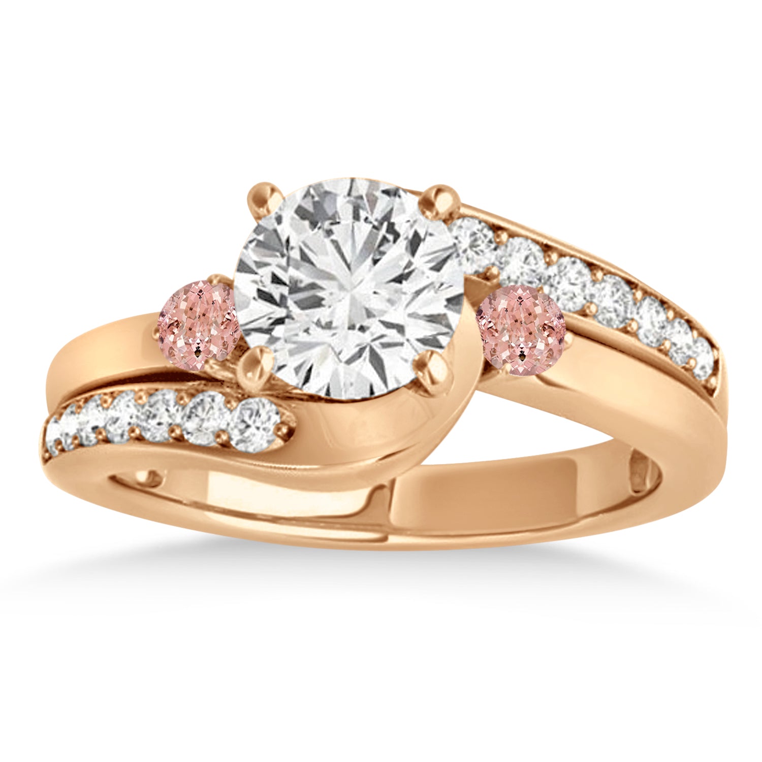 Swirl Design Morganite & Diamond Engagement Ring Setting 18k Rose Gold 0.38ct