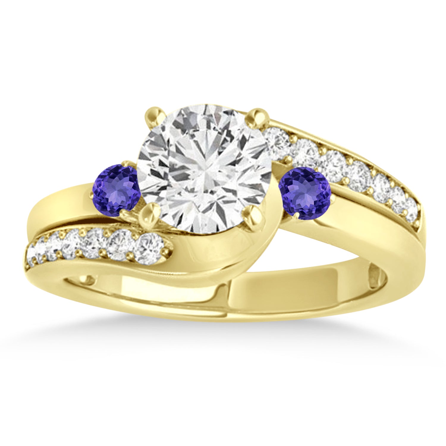 Dazzle her with this 18k yellow gold tanzanite/diamond engagement ring setting with a unique swirl...
