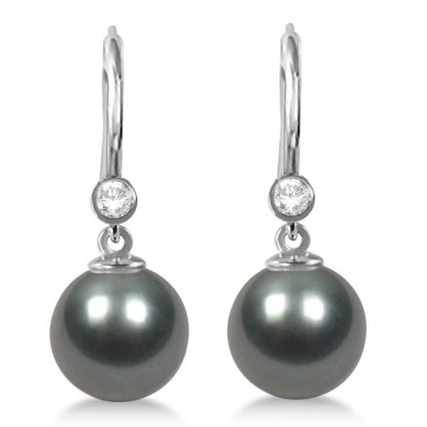 Tahitian Pearl & Diamond Leverback Earrings 14K White Gold 9-10mm